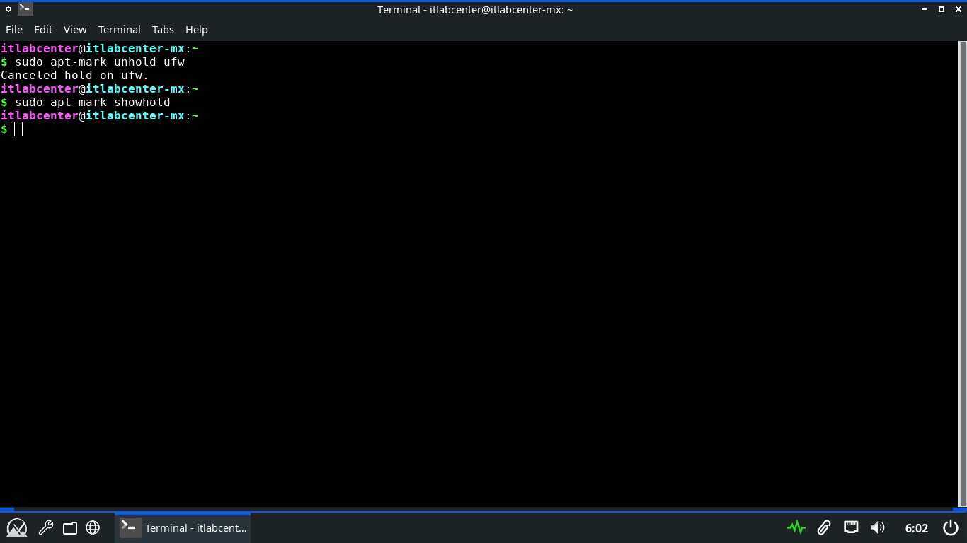 We can see the H status is now displayed, indicating that this specific update is hidden from the GUI view