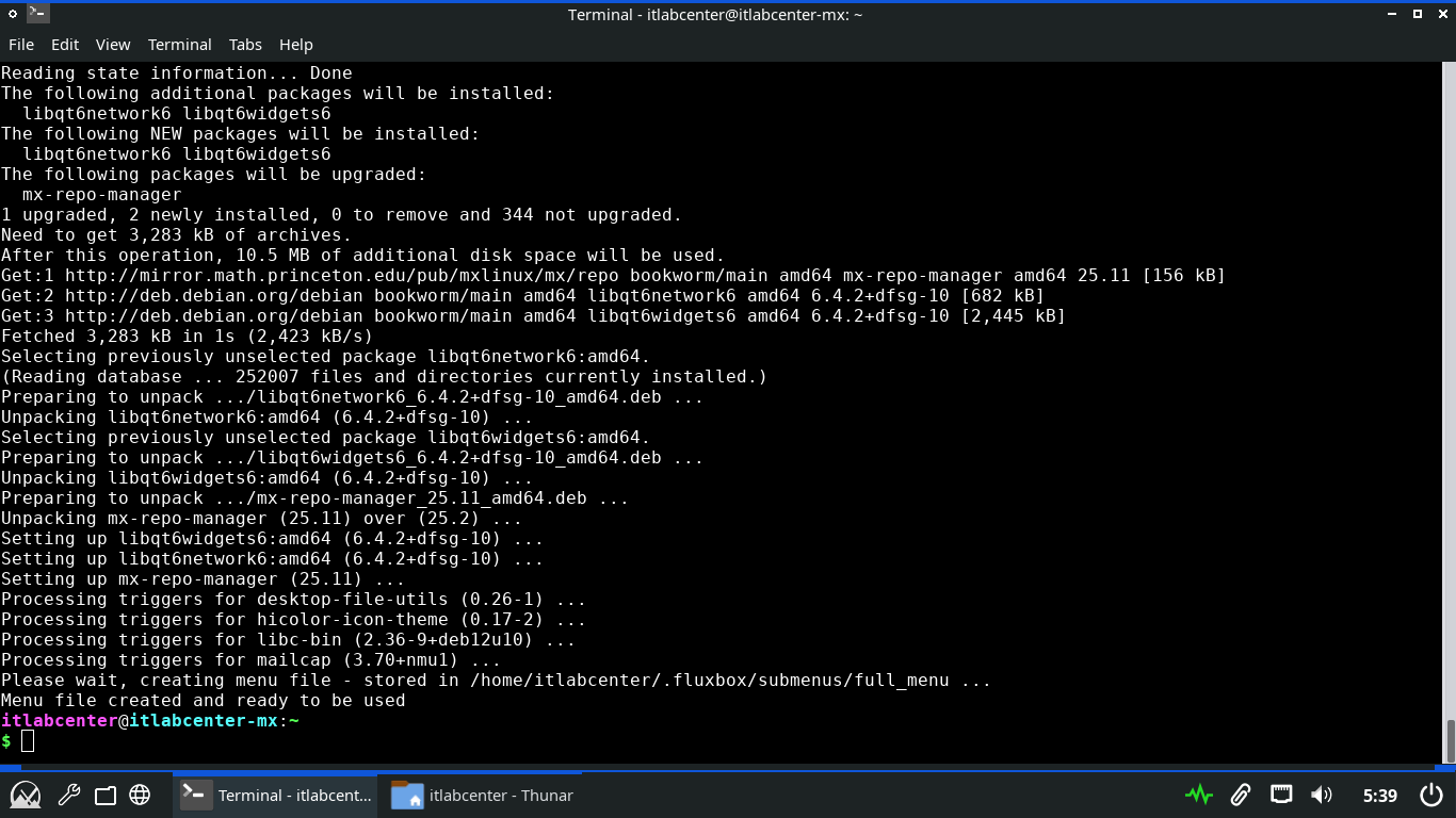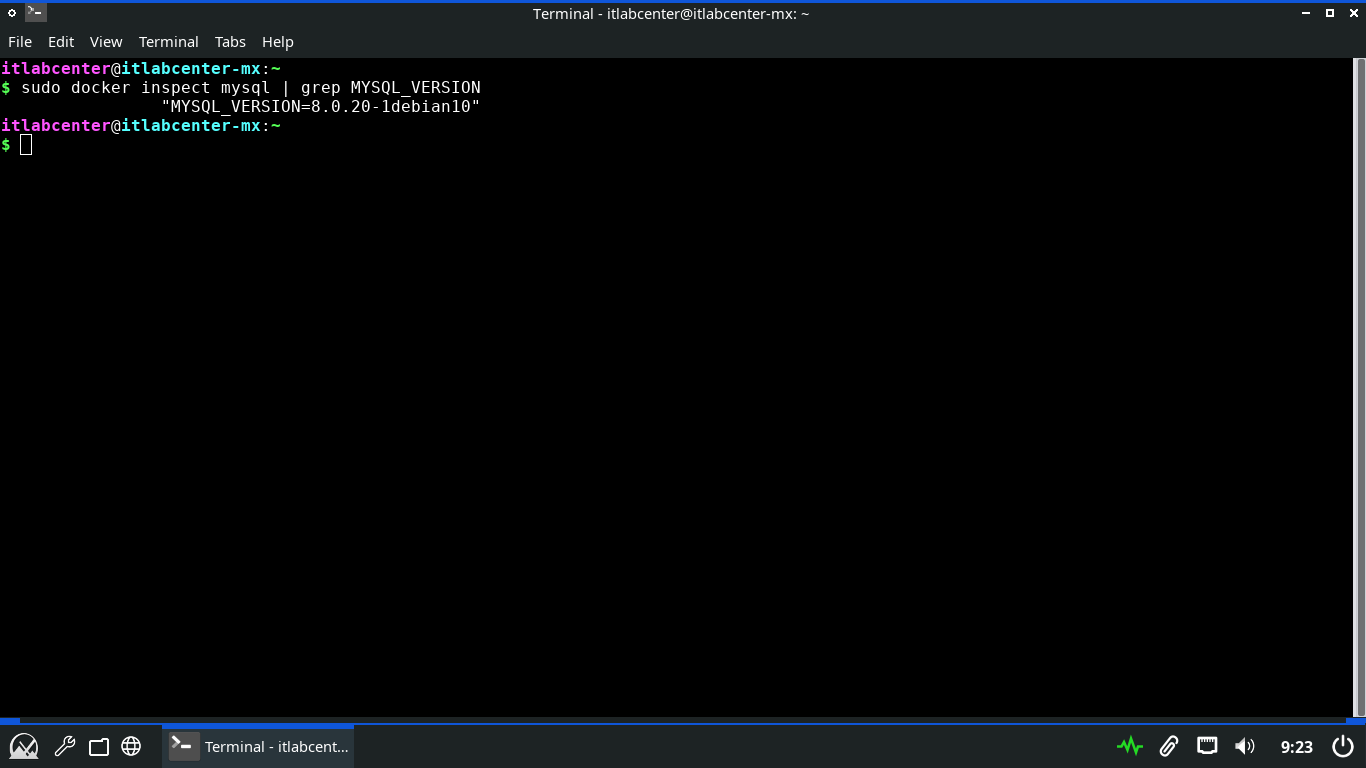 Run the following commands from the MX Linux Terminal to restart the container and inspect it's version