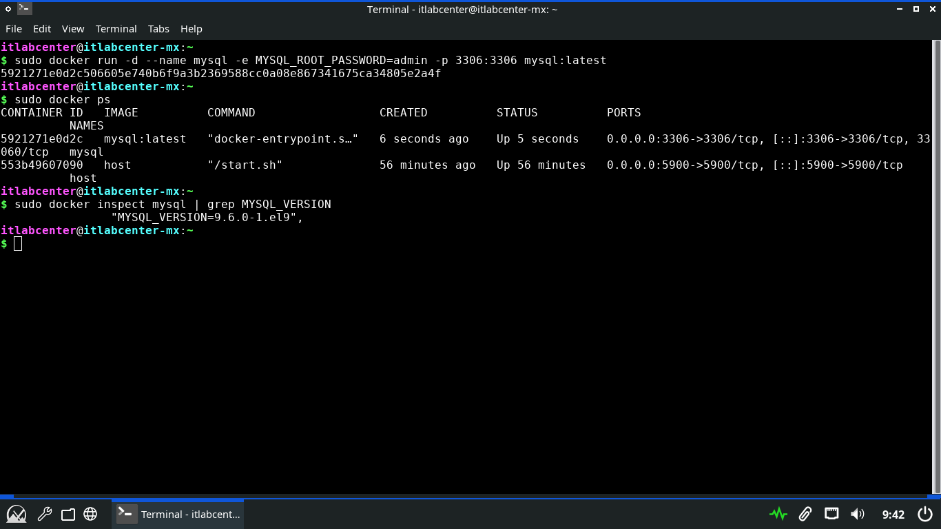 $ sudo docker run -d --name mysql -e MYSQL_ROOT_PASSWORD=admin -p 3306:3306 mysql:latest