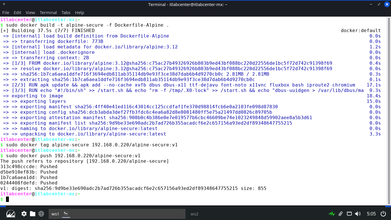 $ sudo docker tag alpine-secure 192.168.0.220/alpine-secure:v1