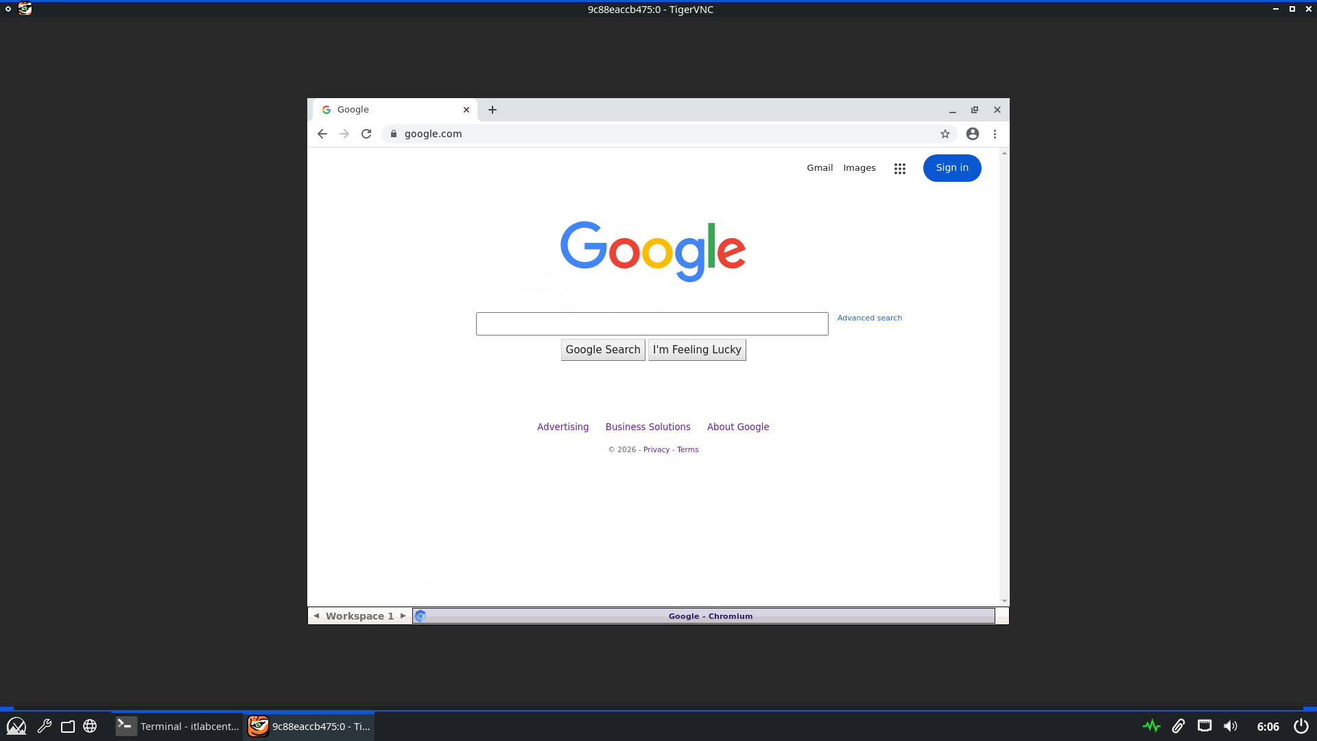 Run the following commands from the MX Endpoint Terminal to launch the container and remote in with VNC