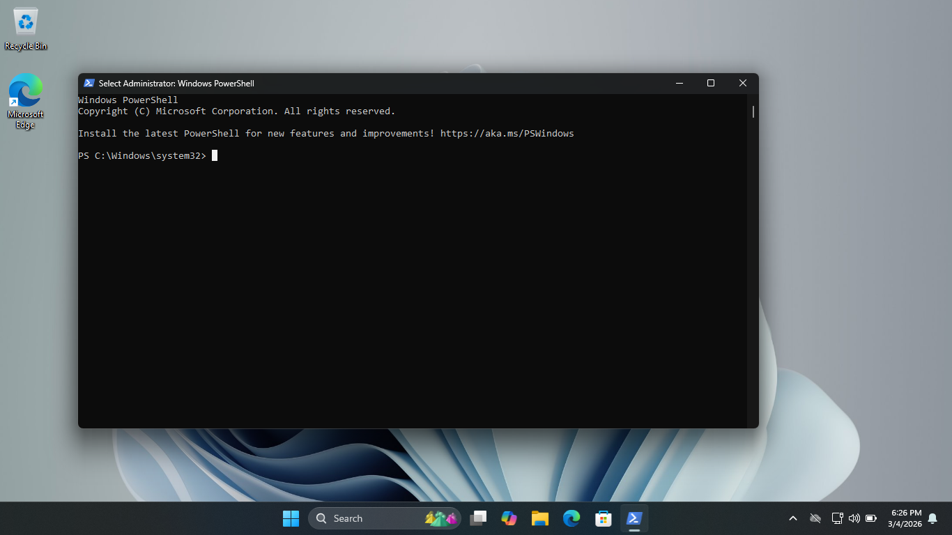 From the taskbar, search for PowerShell, then click on the option listed as Run as Administrator to launch