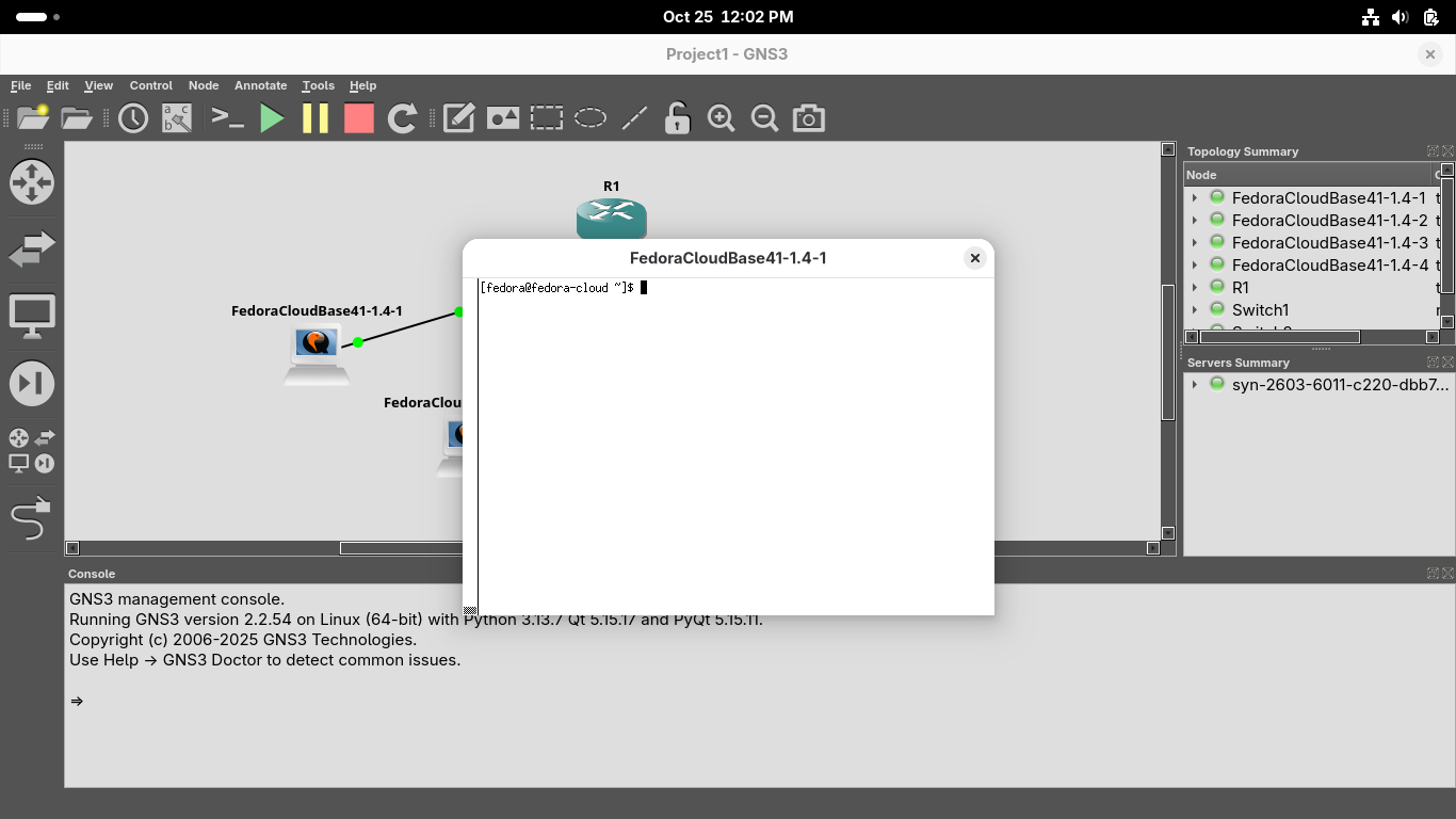 From the GNS3 topology window, right-click FedoraCloudBase41-1.4-1 and select the Console option:
