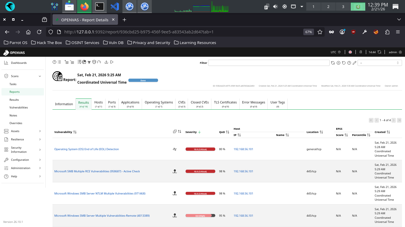 In this lab, we will be using Greanbone's OpenVAS (Open Vulnerability Management System) to perform scans