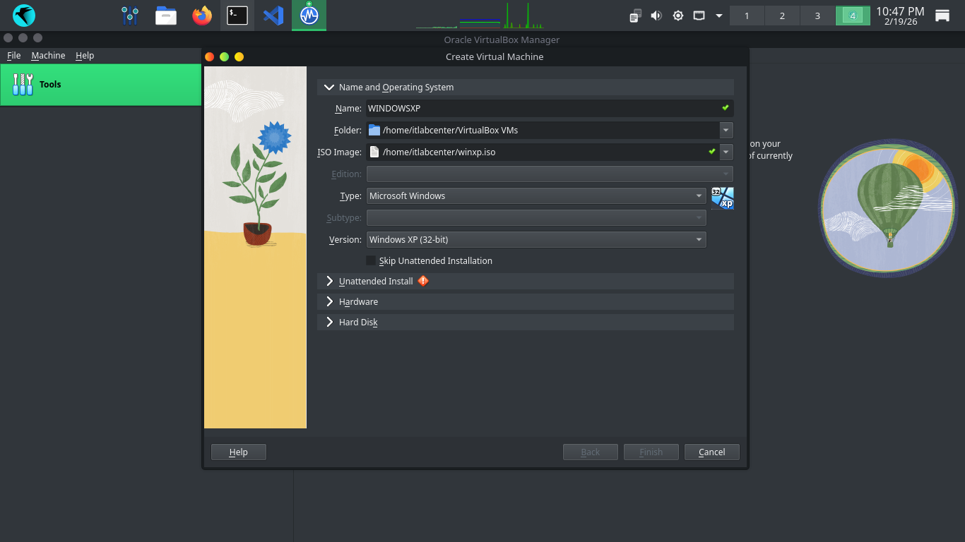 Hit Choose, then hit Finish to add our Virtual Machine. Head to Settings > Type > and set type to PIIX4