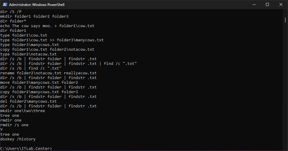 C:\Users\ITLab.Center>type folder1\cow.txt >> folder3\manycows.txt