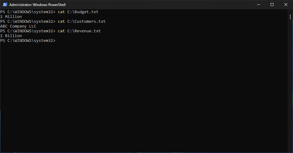 PS C:\WINDOWS\system32> cat C:\Revenue.txt