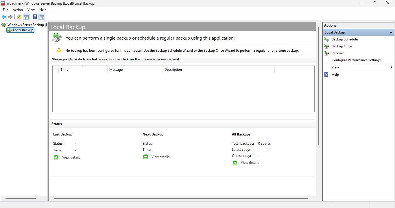 Run the following command from the PowerShell Terminal to open the Windows Server's wbadmin console: