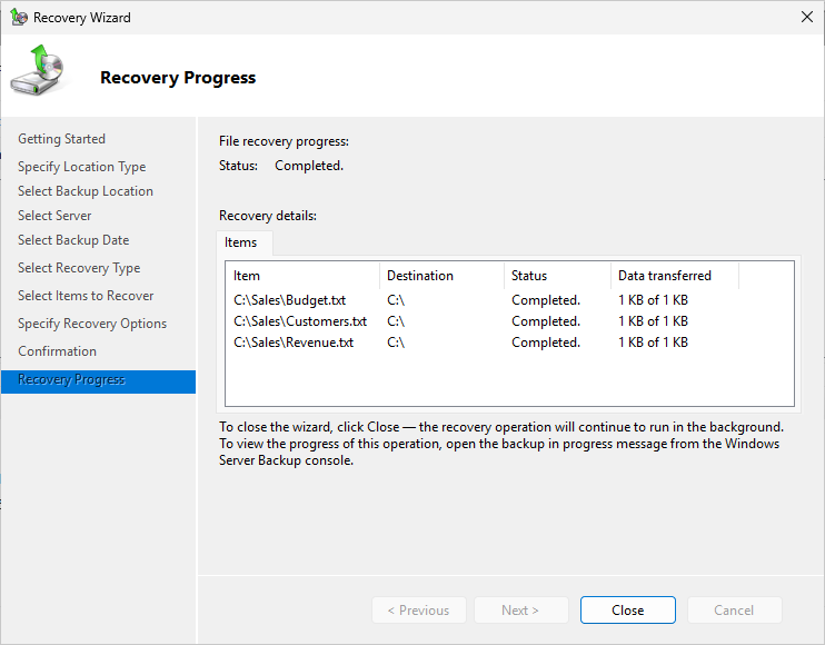 Congratulations, you now have the skills necessary to backup and recover data using Windows Server