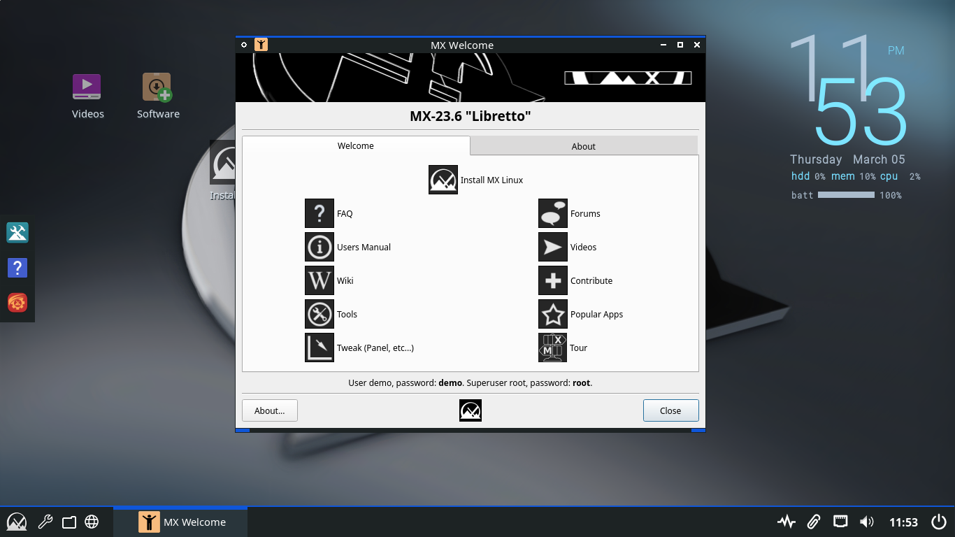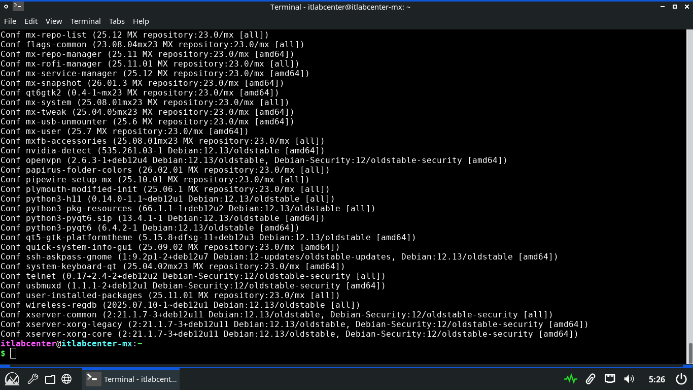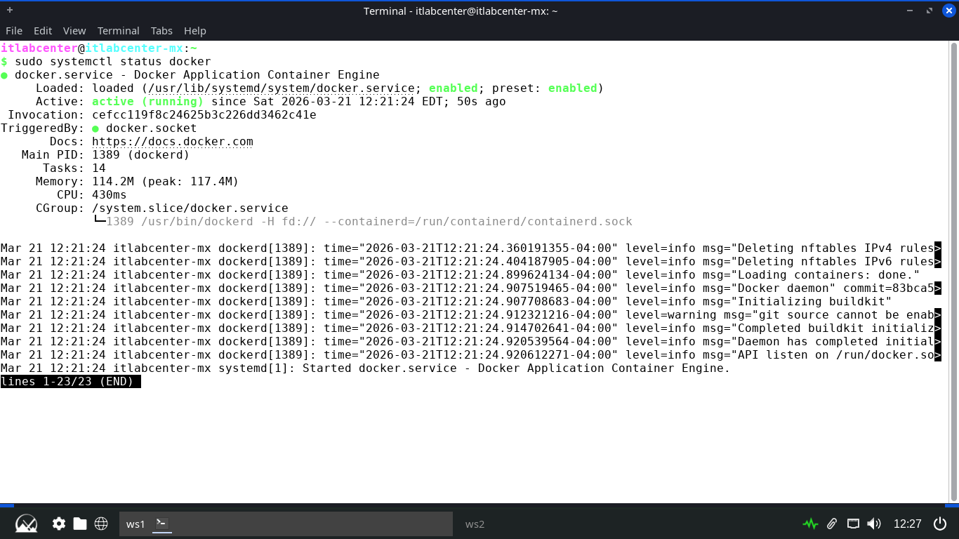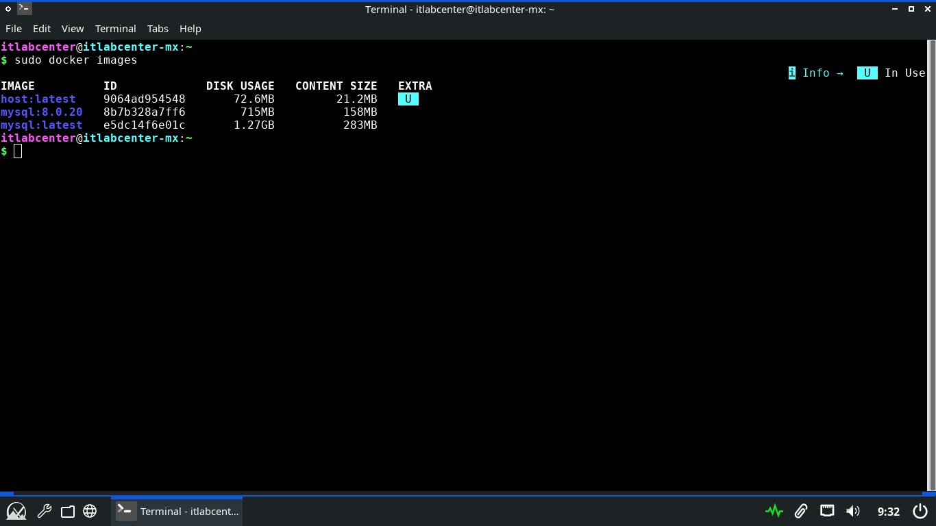 Run the following commands from the MX Linux Terminal to restart the container and inspect it's version