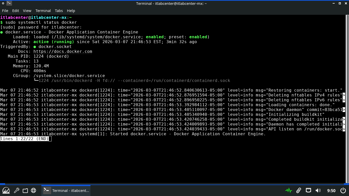 Run the following command from the Repo Server Terminal to enable the docker service reboot the Linux system