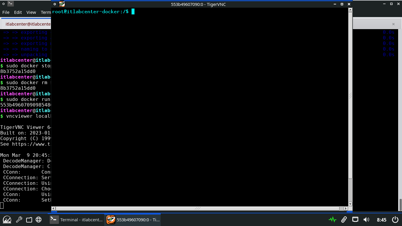 Run the following commands from the MX Endpoint Terminal to launch the container and remote in with VNC