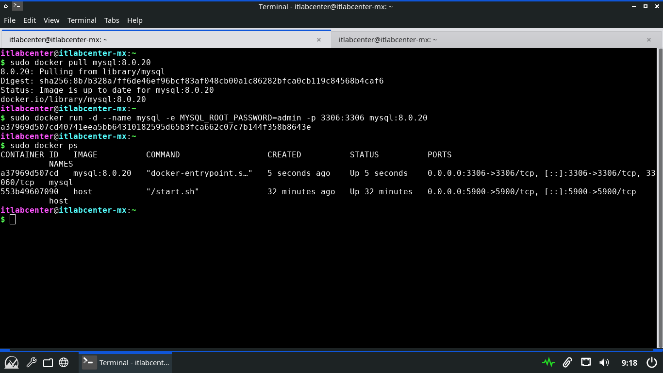 $ sudo docker run -d --name mysql -e MYSQL_ROOT_PASSWORD=admin -p 3306:3306 mysql:latest