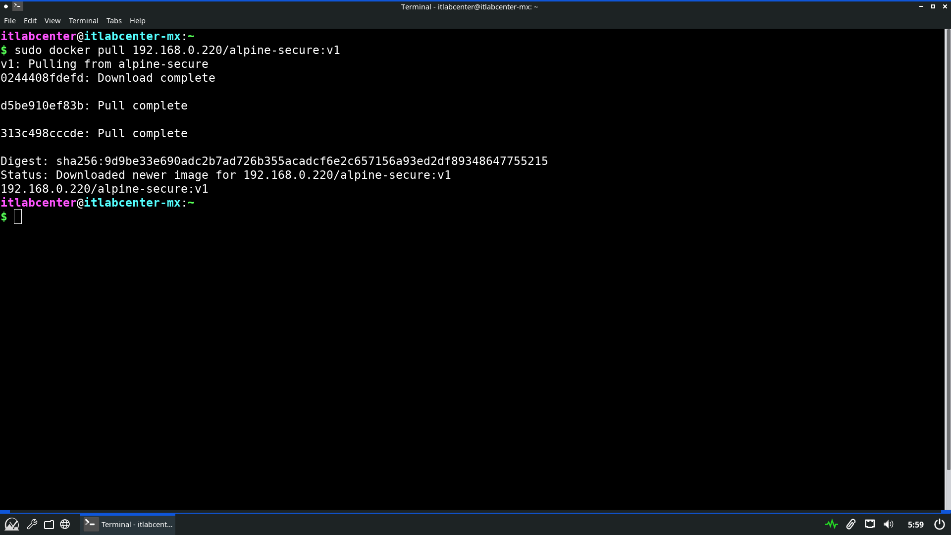 $ sudo docker pull 192.168.0.220/alpine-secure:v1