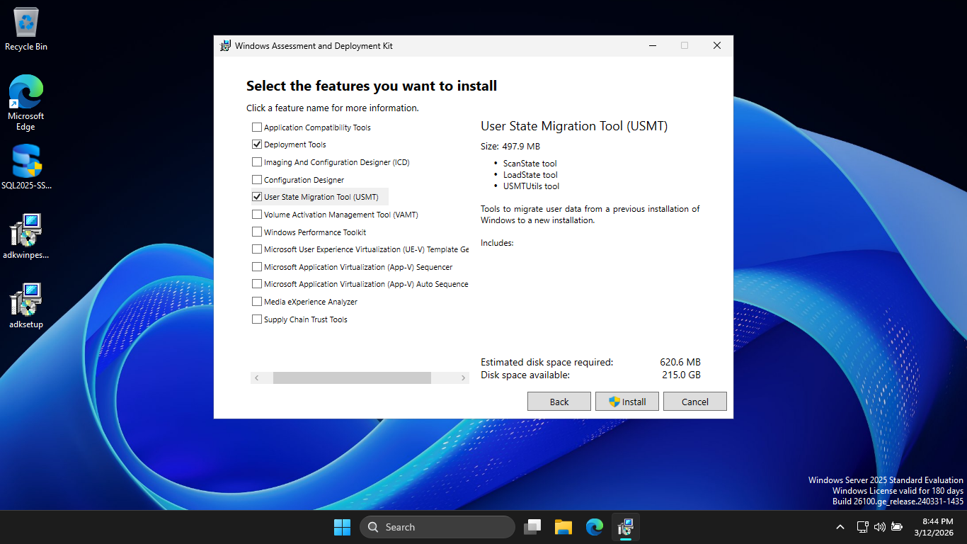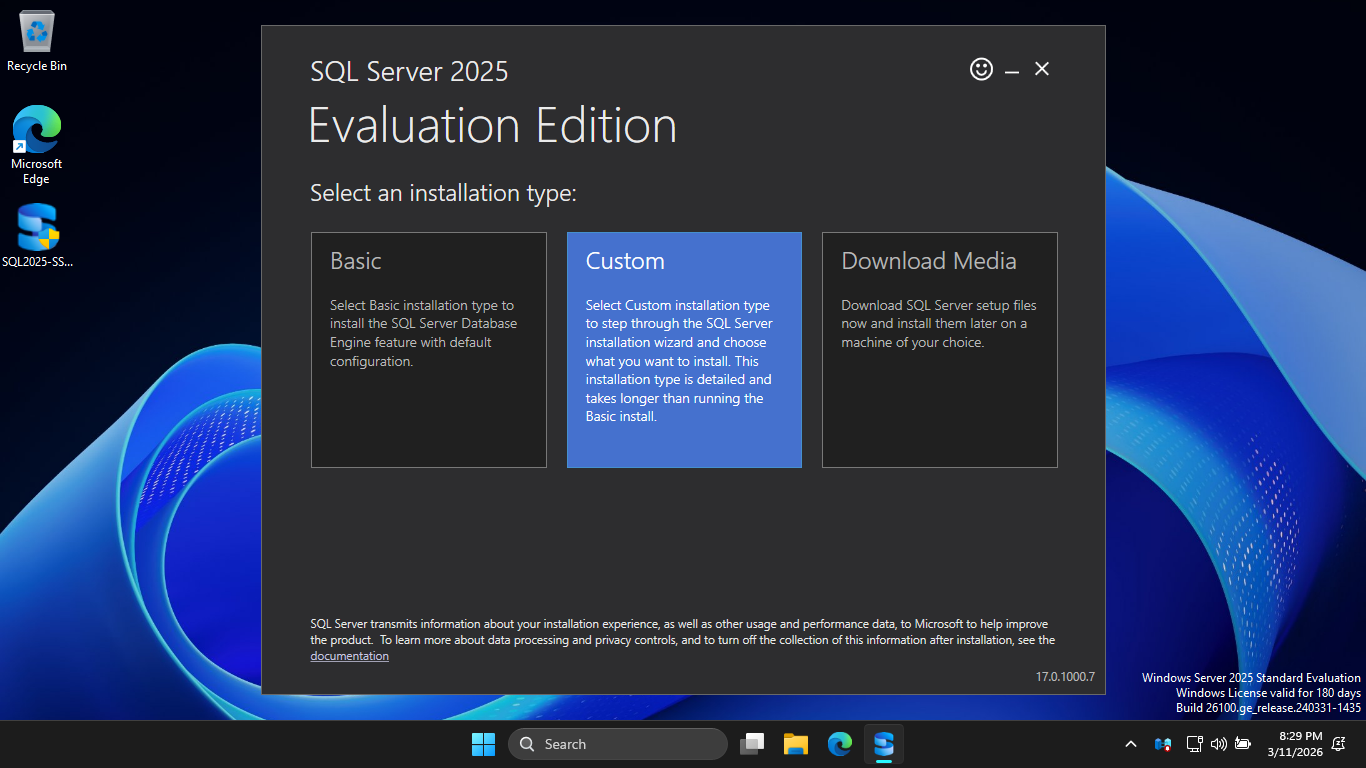 Navigate through the installer and select the Windows Server Standard Evaluation Desktop Experience option: