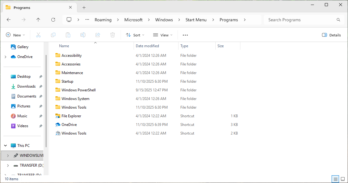 Within the Programs folder, you should see another folder titled Startup, this is the Startup folder
