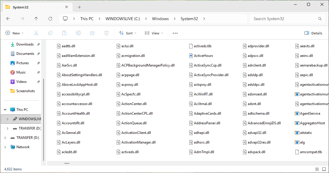 In the File Explorer, navigate to C:\Windows\System32, scroll down and take note of all the files:
