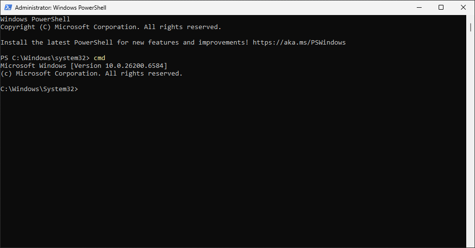 Run the following command from the Powershell terminal to downgrade the window to a Command Prompt:
