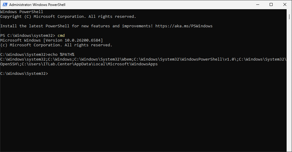 PS C:\Windows\system32> cd C:\Users\ITLab.Center