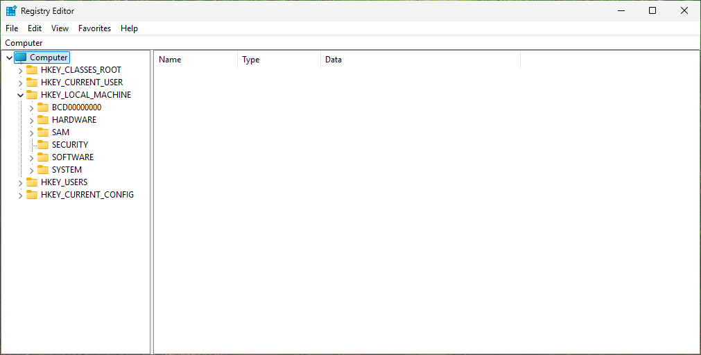When prompted, click yes to continue. From the Registry Editor expand the HKEY_LOCAL_MACHINE hive: