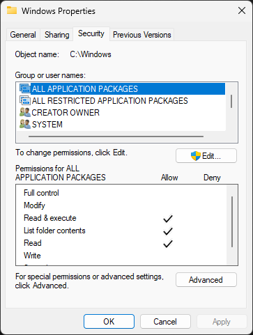 In the Advanced Security Settings window, click OK to apply your changes and close out of the window