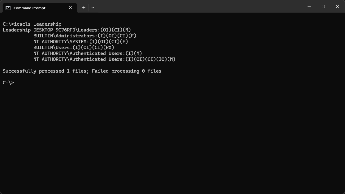 C:\>icacls Leadership