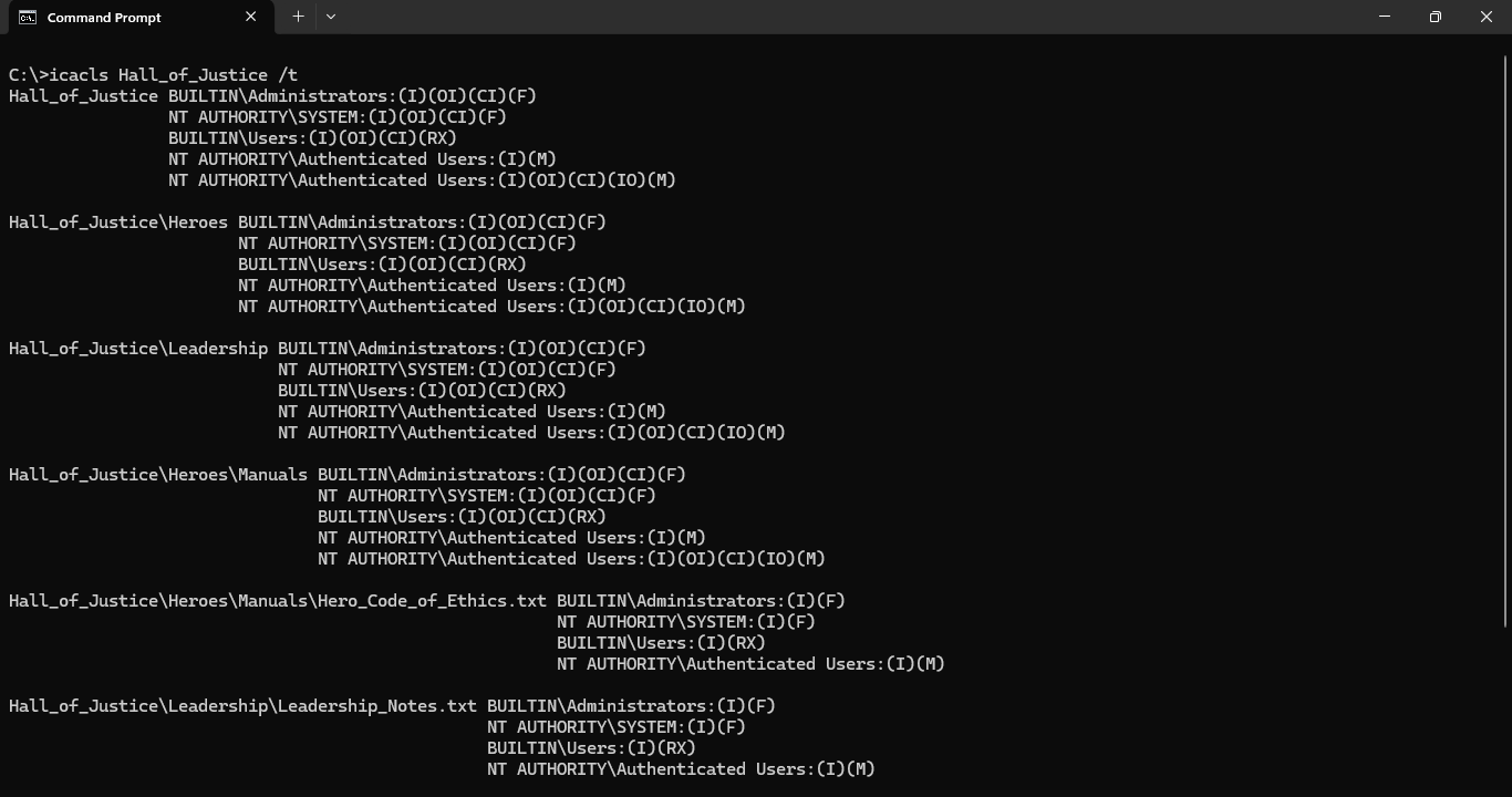 C:\>icacls Hall_of_Justice /t
