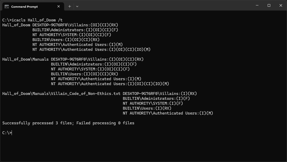 C:\>icacls Hall_of_Doom /t