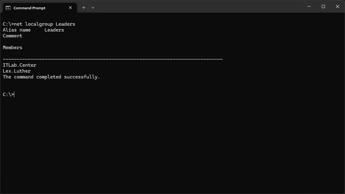 C:\>net localgroup Leaders Lex.Luther /ADD