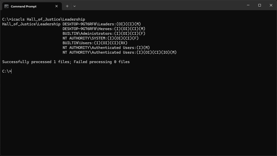 C:\>icacls Hall_of_Justice\Leadership