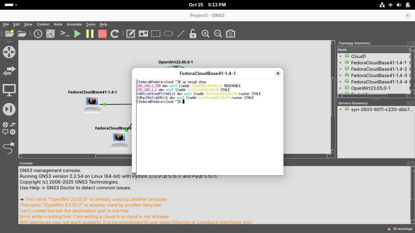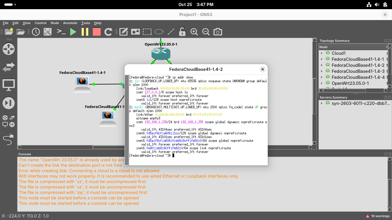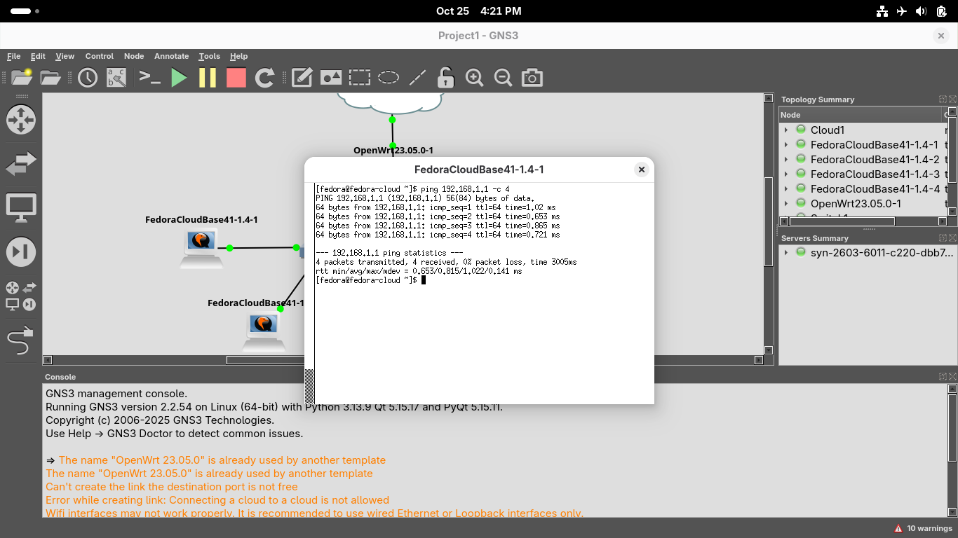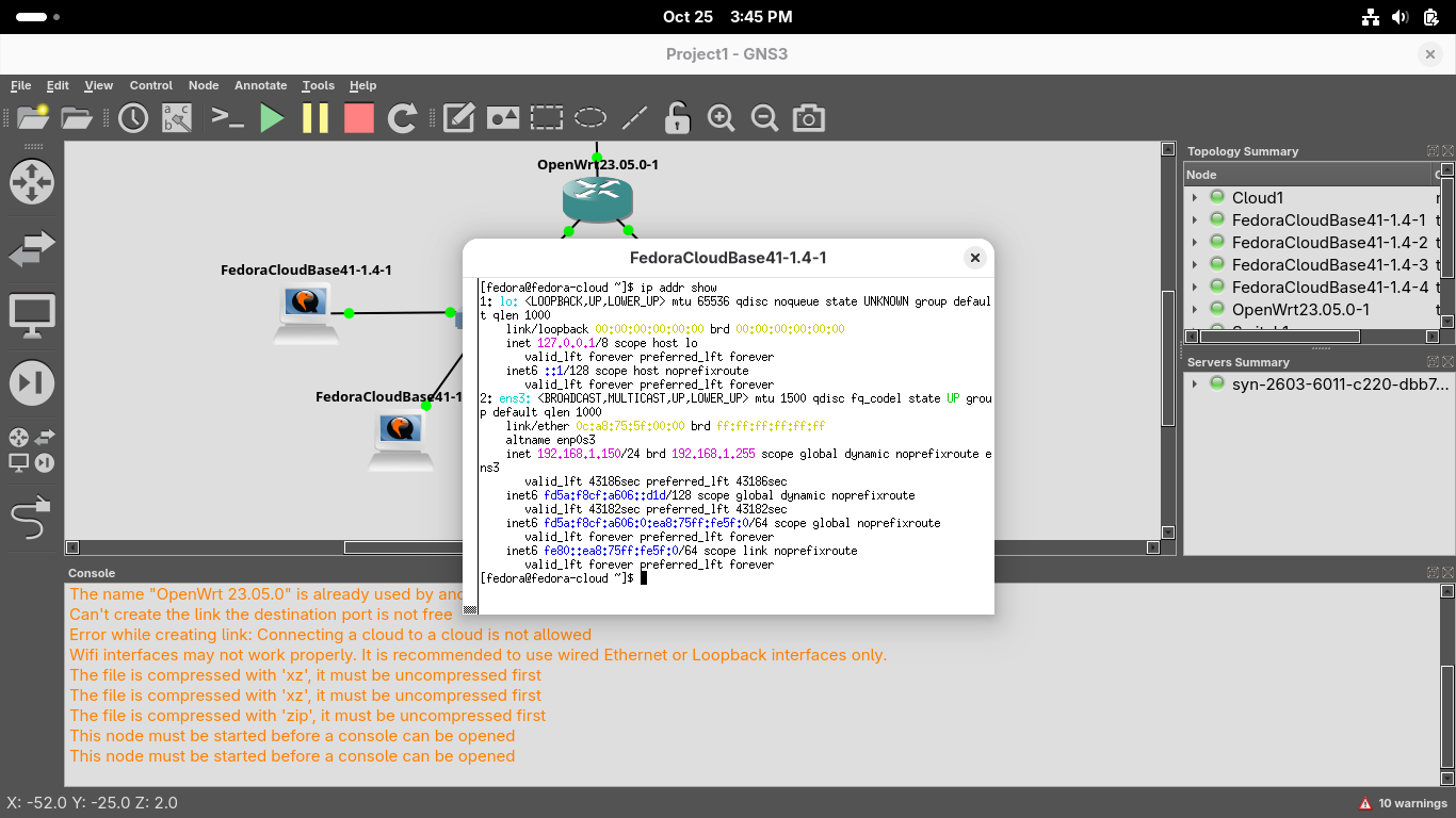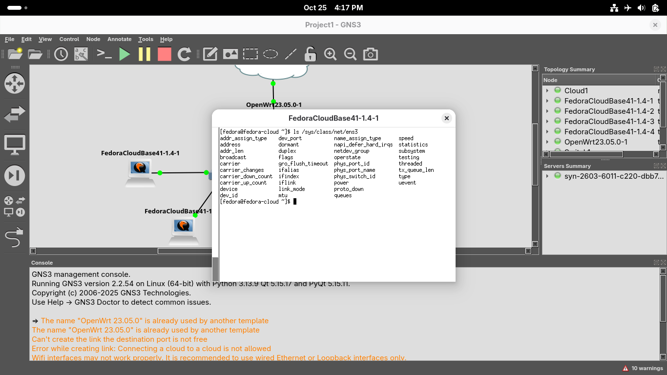 From the GNS3 topology window, right-click FedoraCloudBase41-1.4-1 and select the Console option: