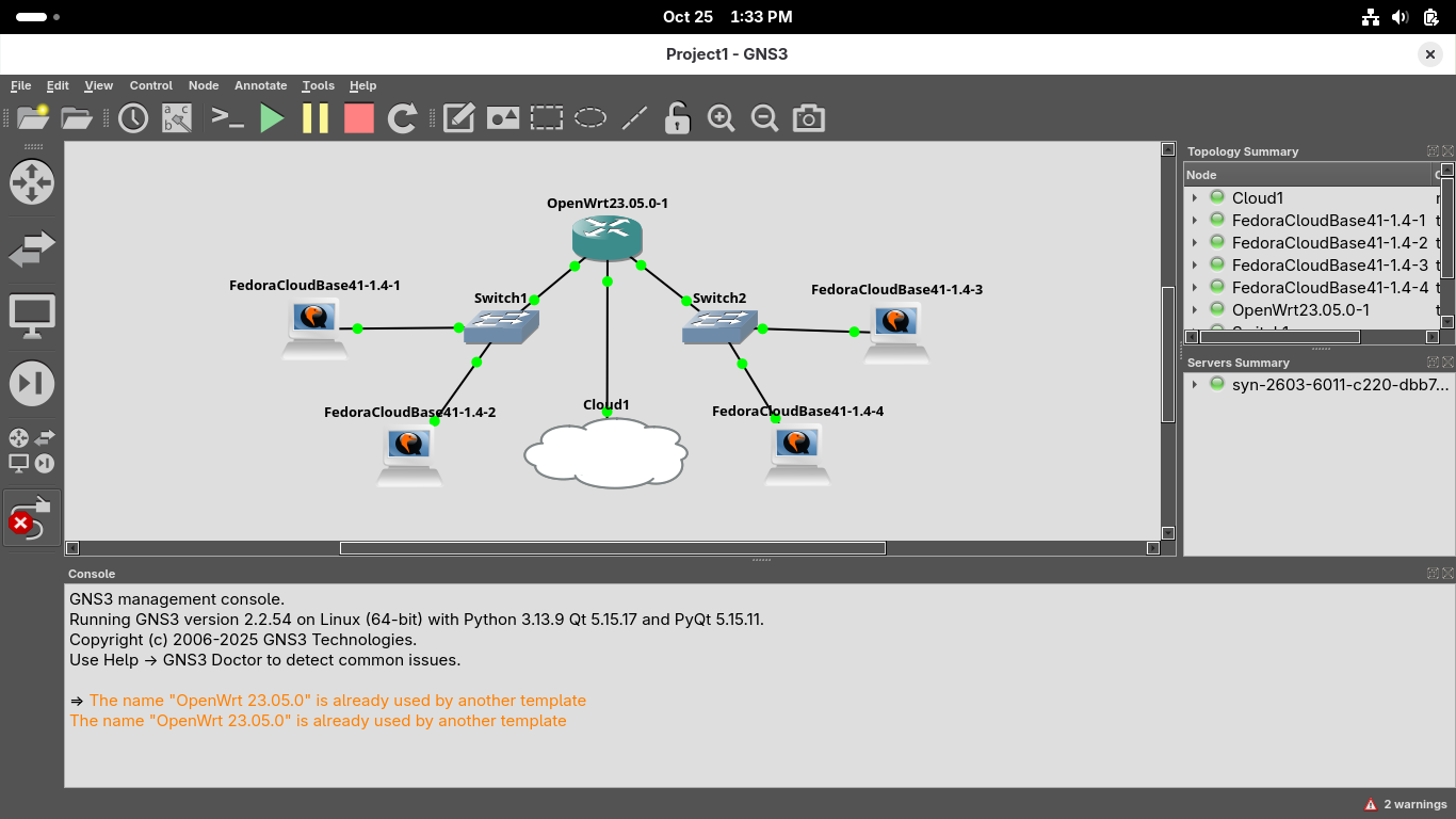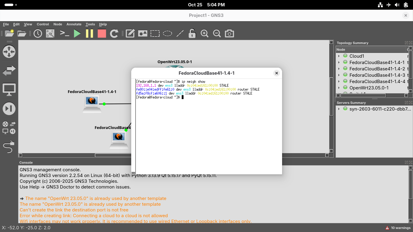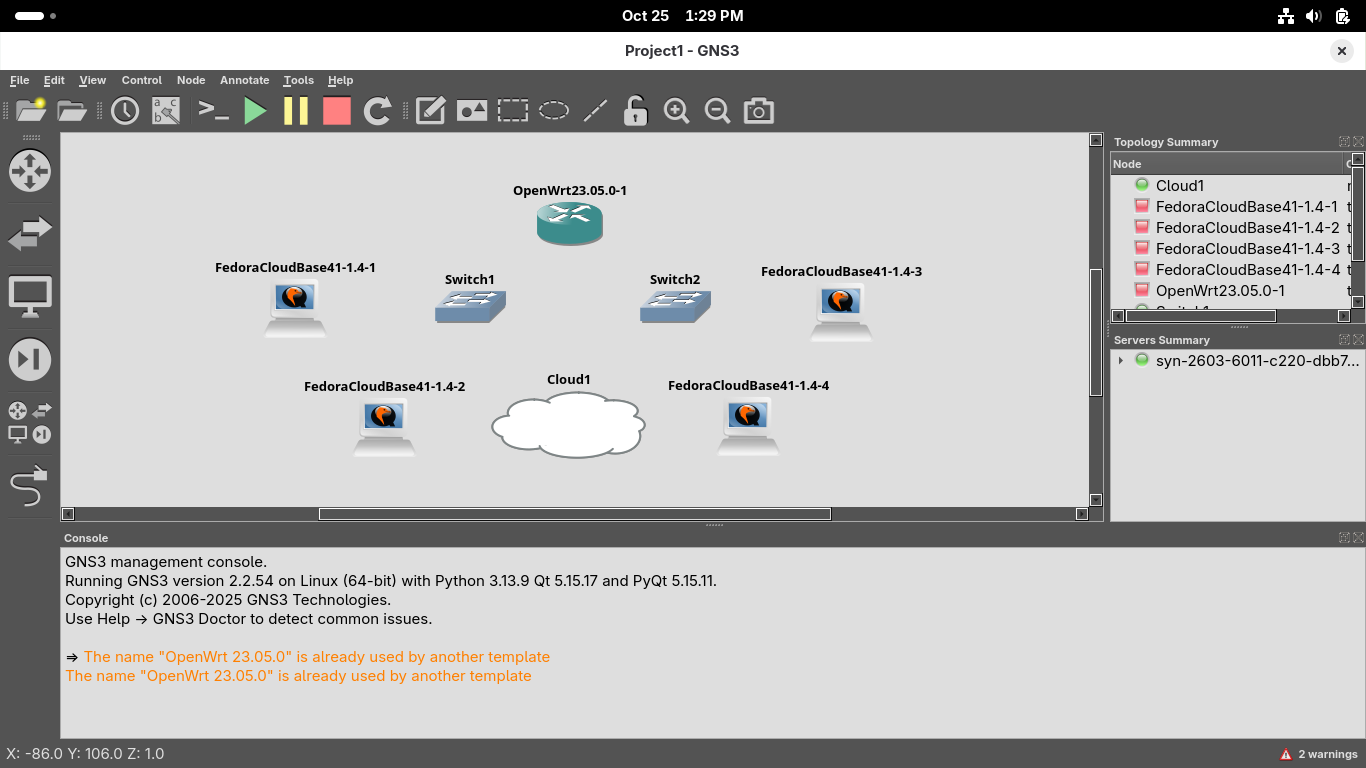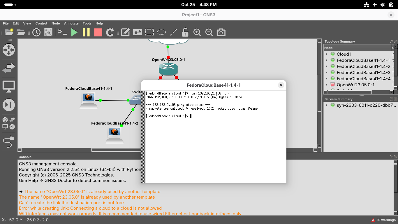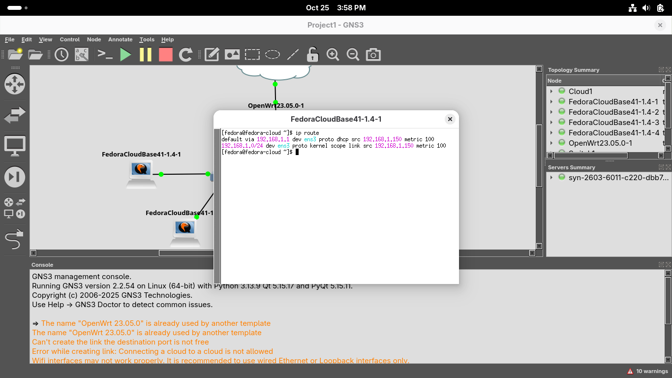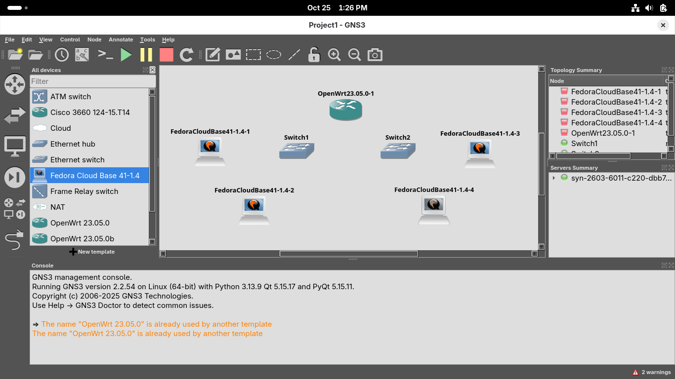 From the GNS3 topology window, right-click FedoraCloudBase41-1.4-1 and select the Console option: