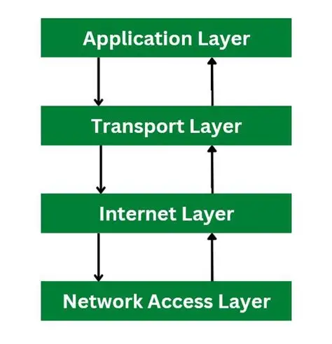It is a layered protocol, meaning it is organized into four distinct areas of differing function