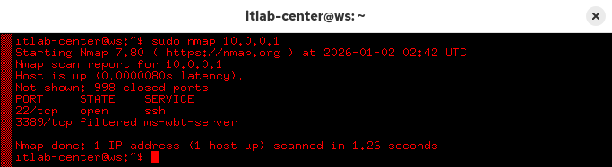 itlab-center@ws:/# sudo nmap 10.0.0.1
