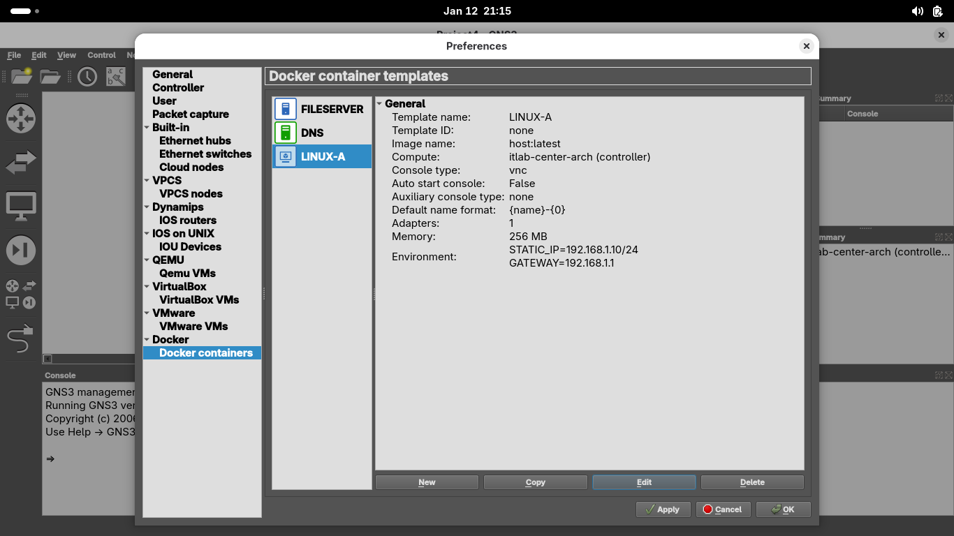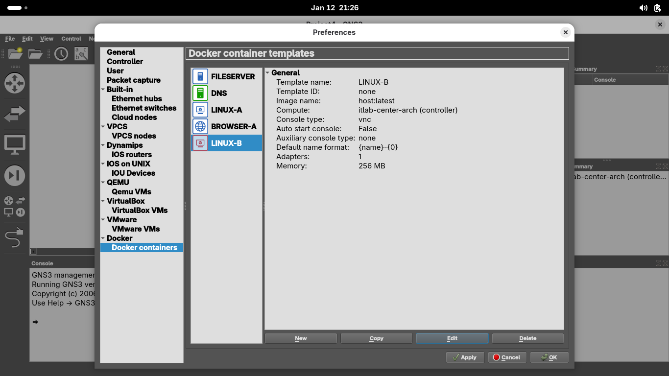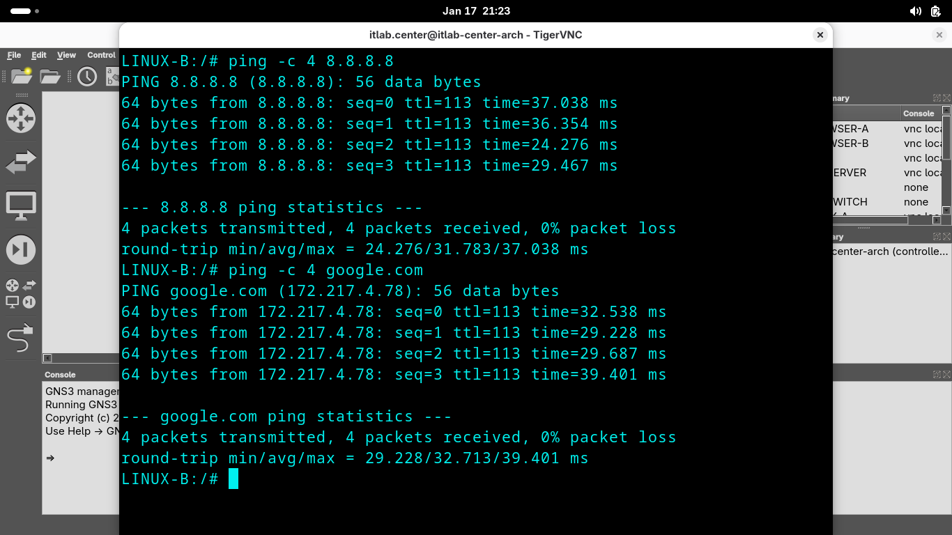 Run the following command from the GNS3 LINUX-B Console Terminal to test connectivity to the FILESERVER: