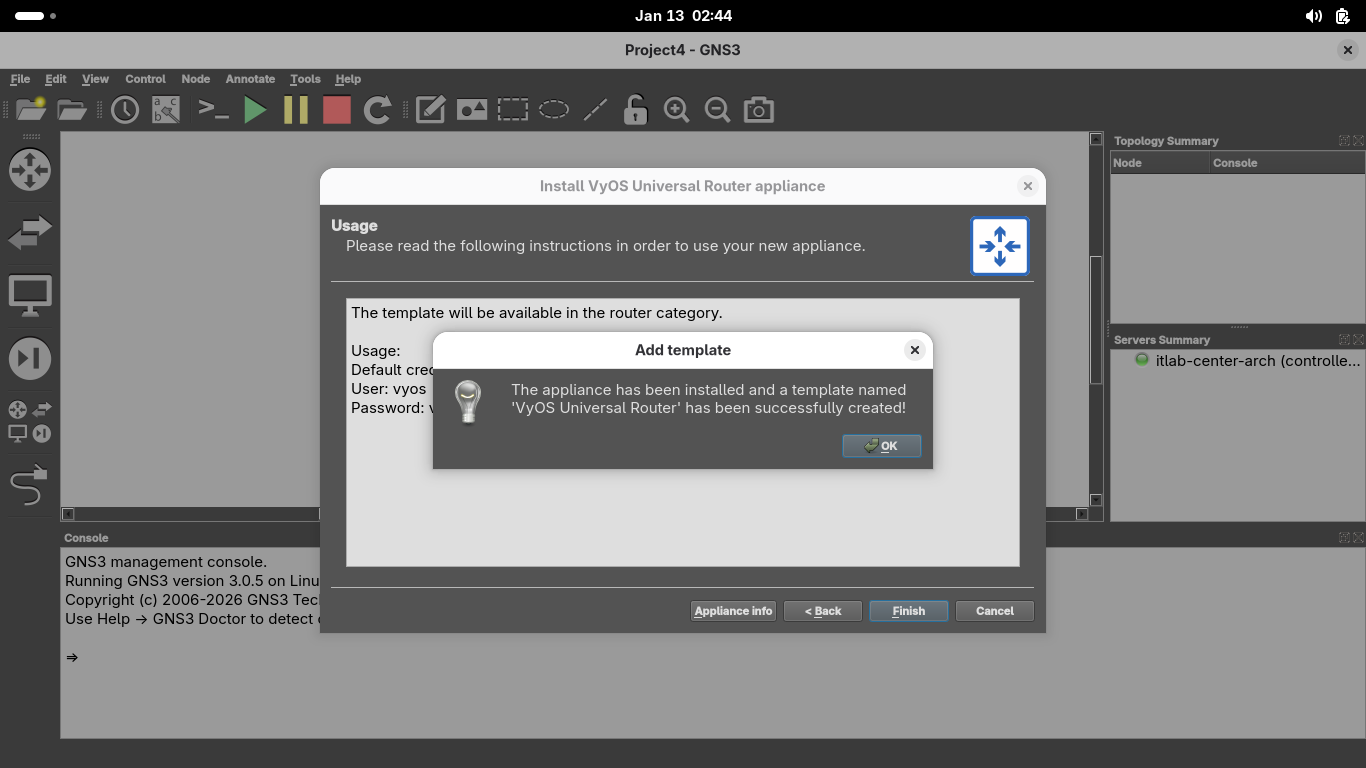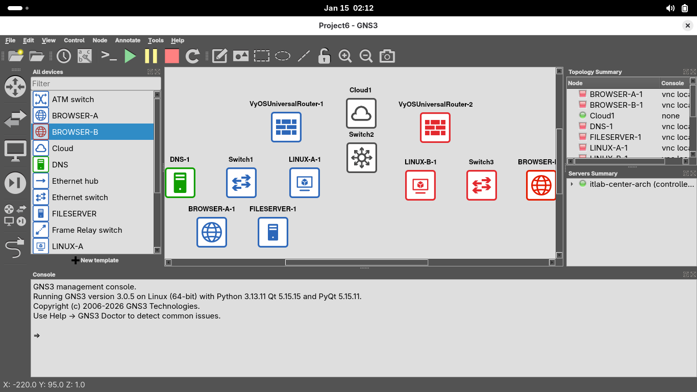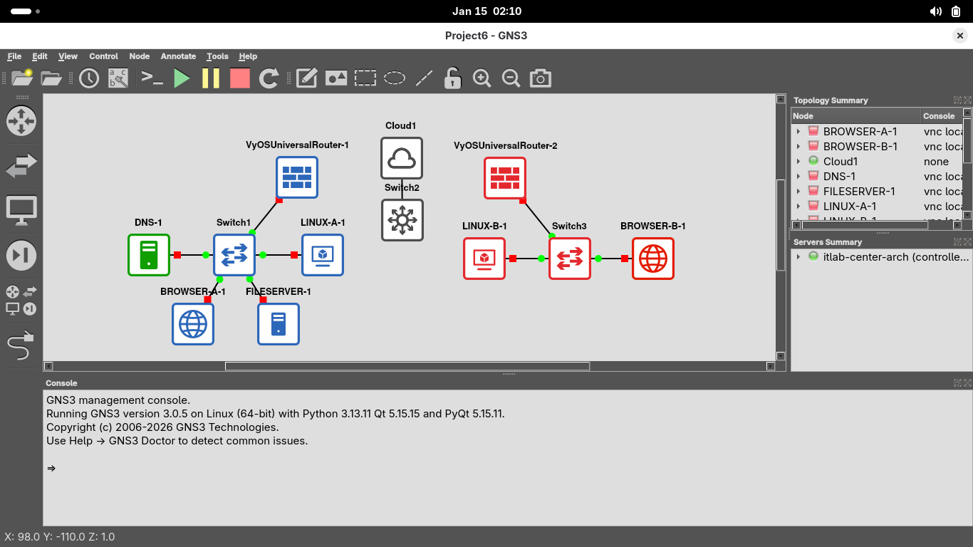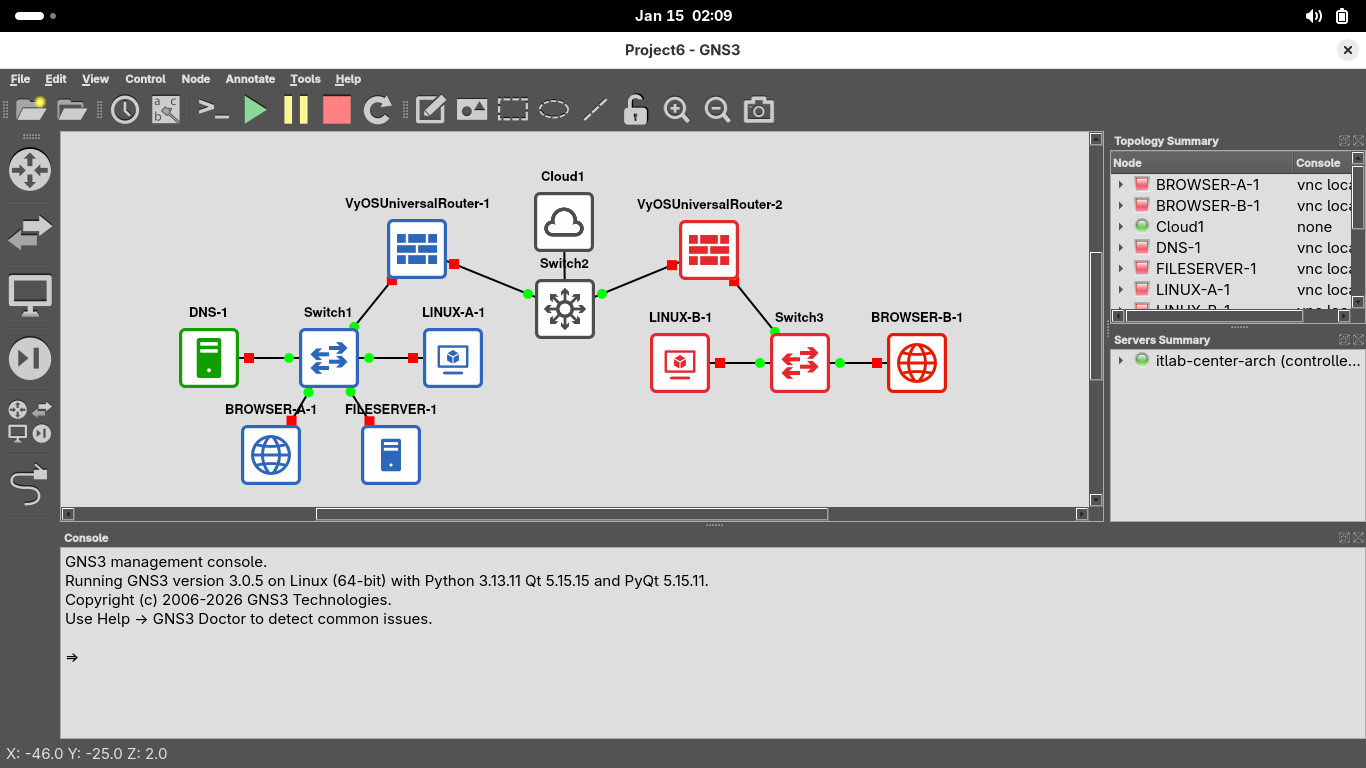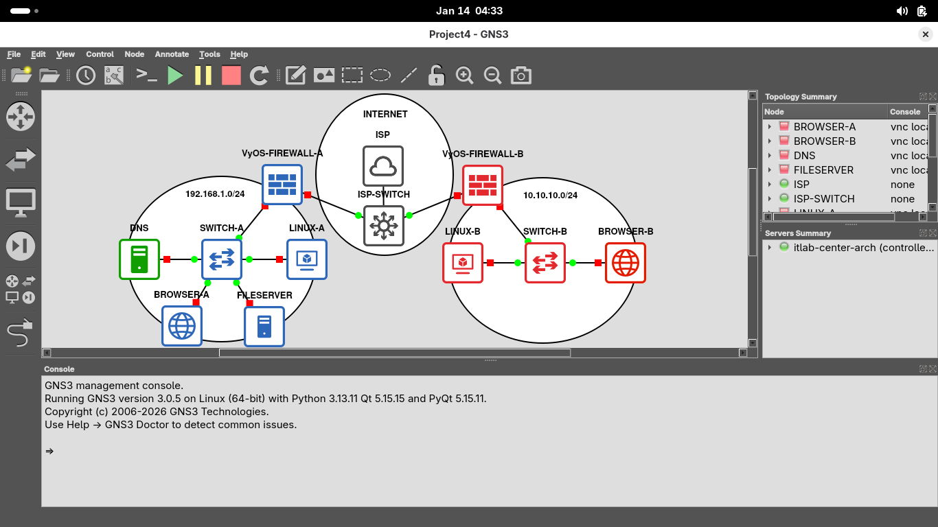 Right click the VyOS-FIREWALL-A appliance and select console to restore the firewall appliances terminal