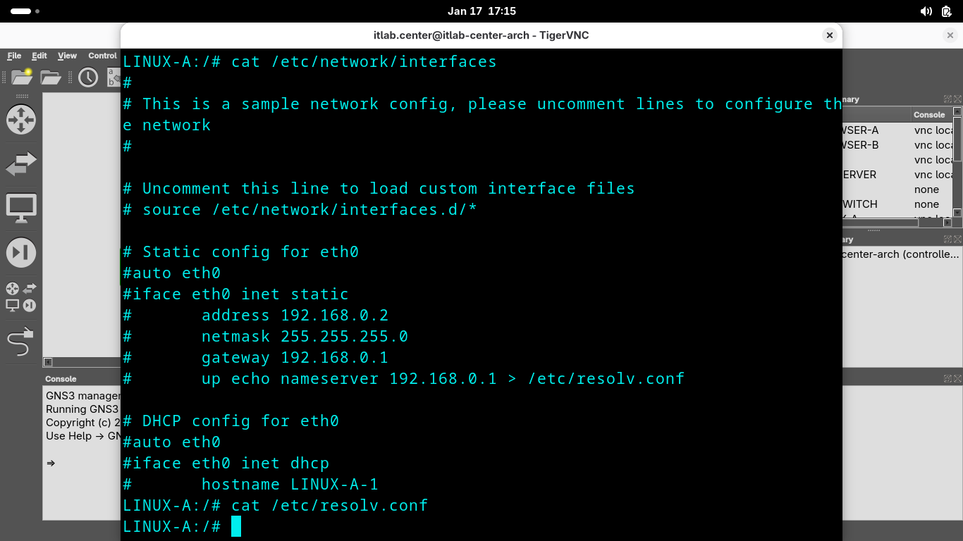 LINUX-A:/# echo "search itlab.center" >> /etc/resolv.conf