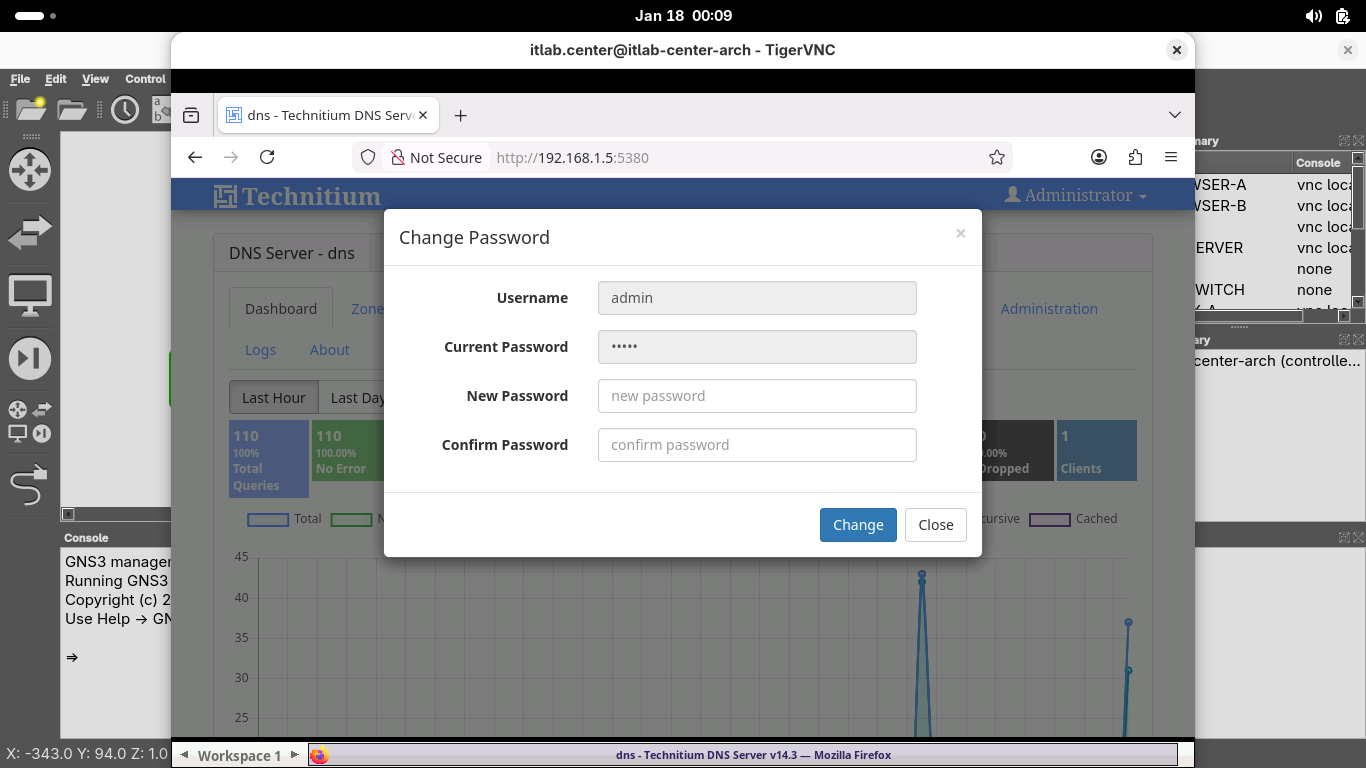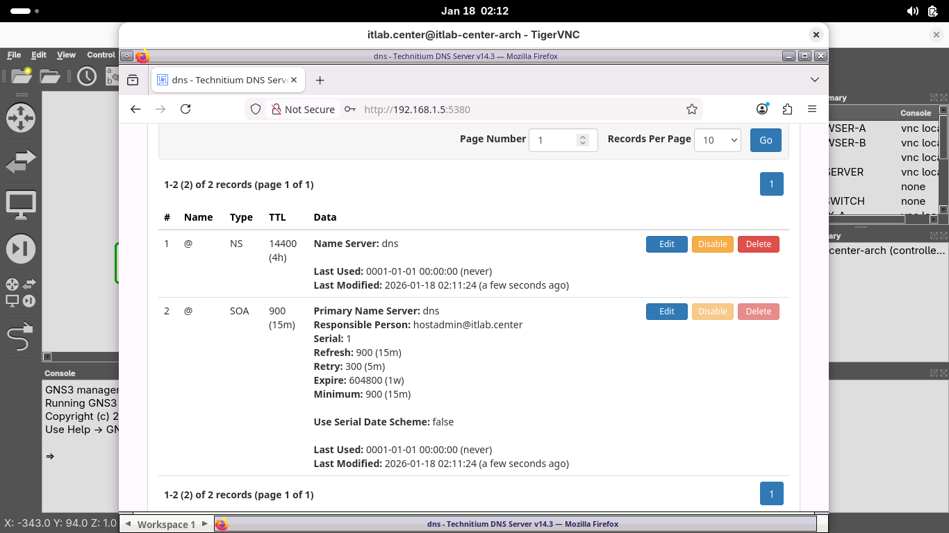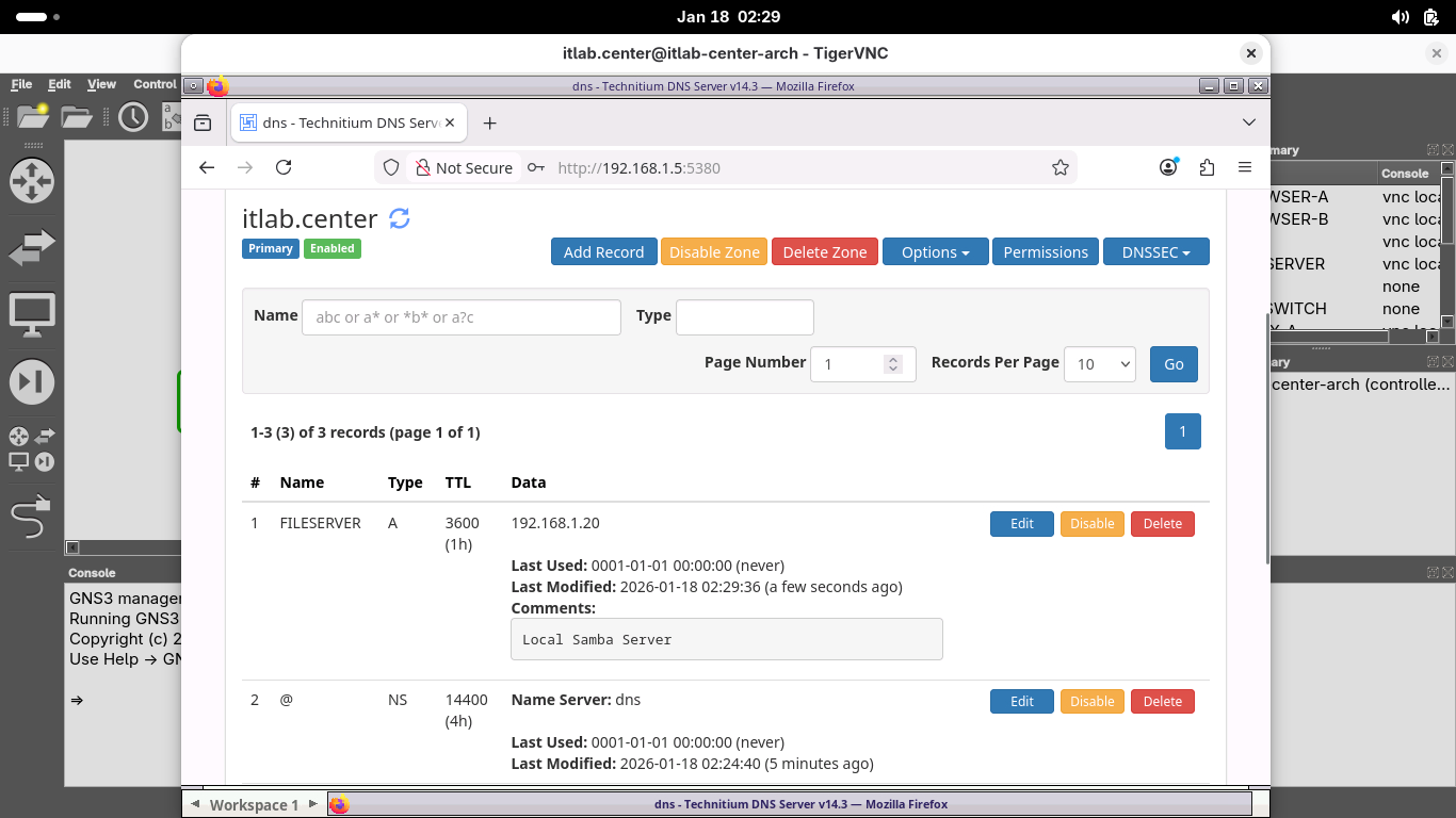 Set a new admin password, then head to the Zones tab and select itlab.center to view our dns zone file: