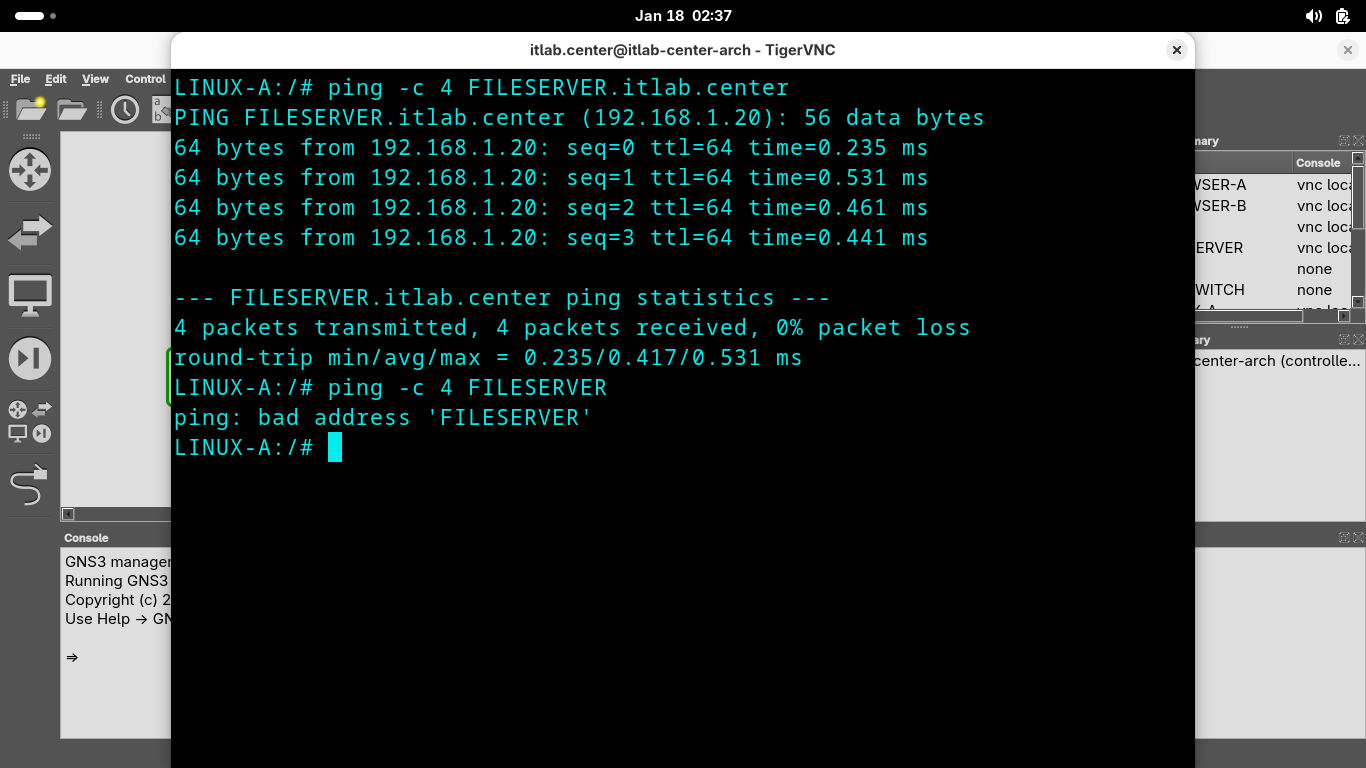 LINUX-A:/# ping -c 4 FILESERVER.itlab.center