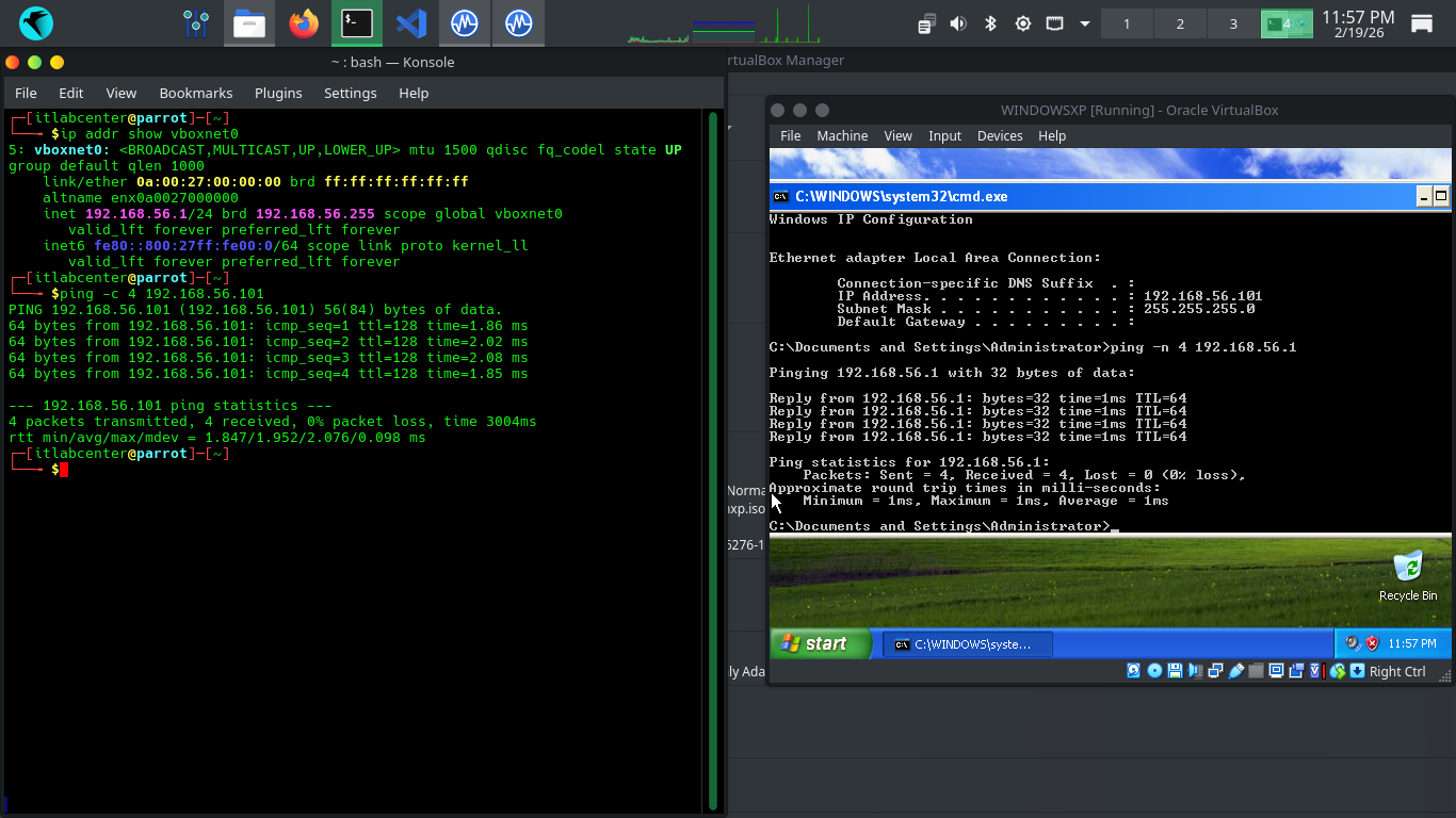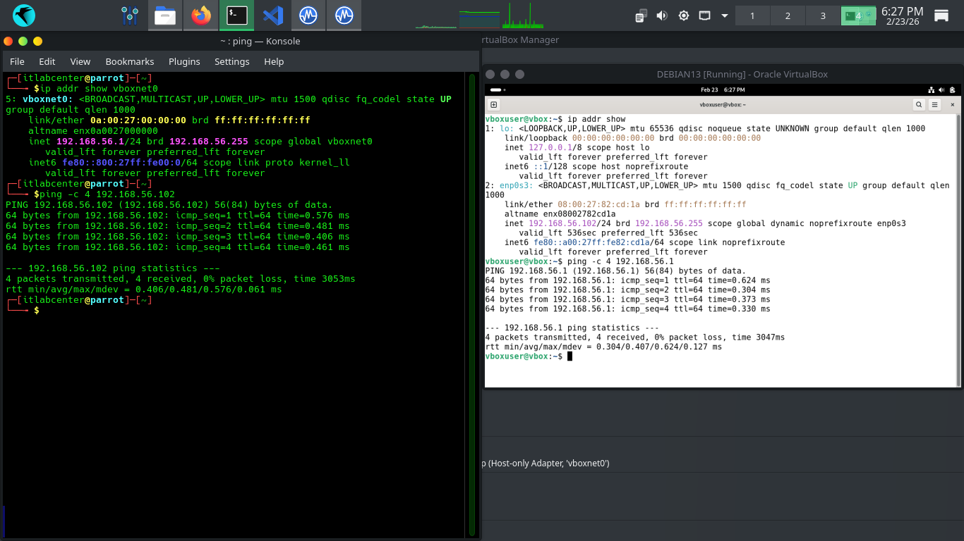 Run the following commands from the Parrot and MacOS Terminals to ping each other to test our connectivity