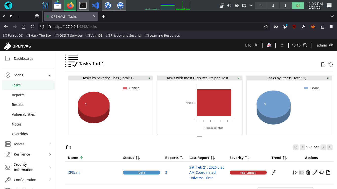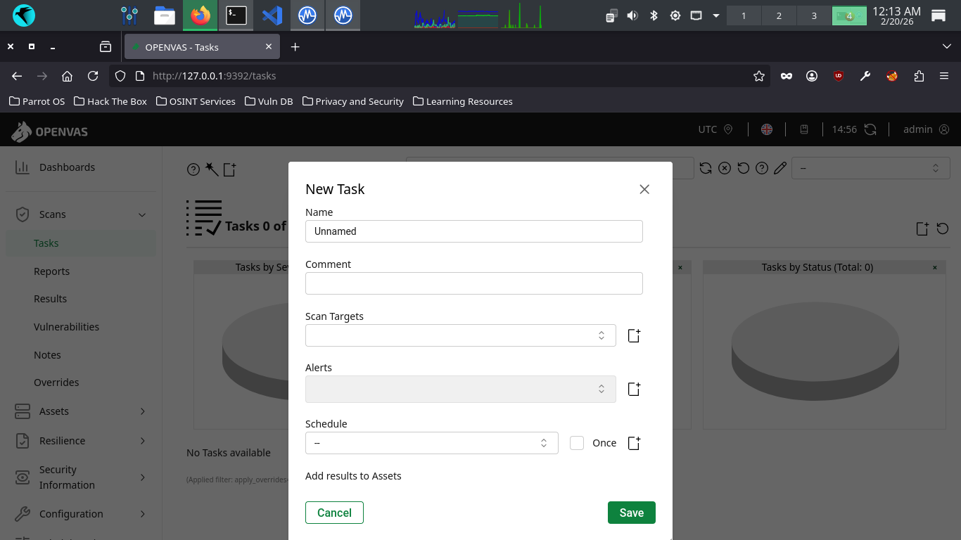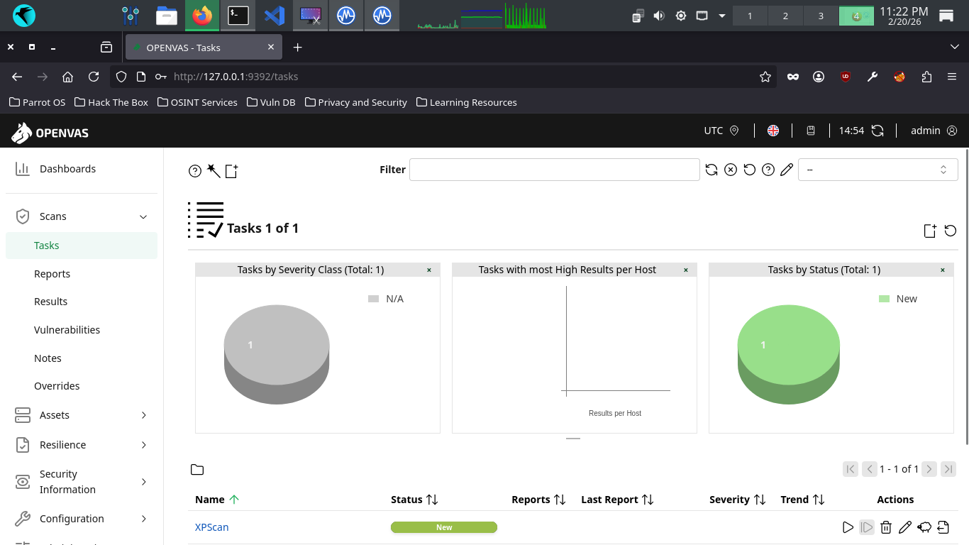 OpenVAS uses Tasks to represent individual scan setups. These consist primarily of three compenents: the