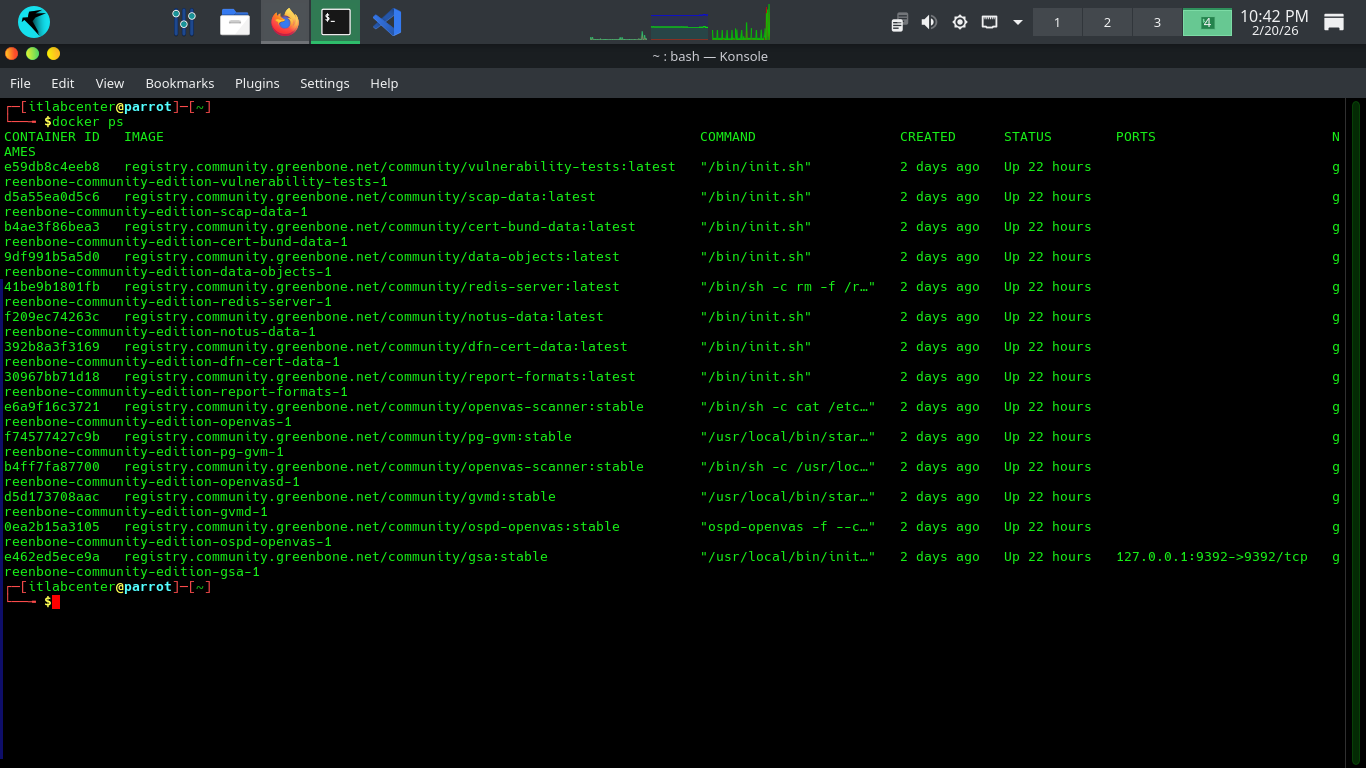 Since native GVM packages often break on Parrot, Greenbone officially recommends using Community Containers