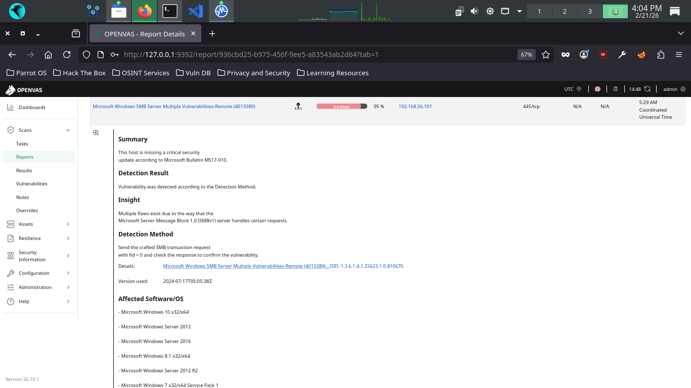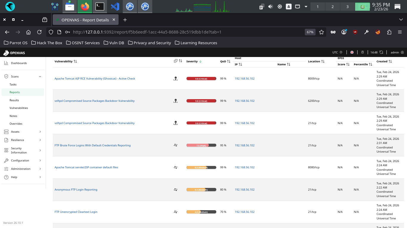 In this lab, we will be using Greanbone's OpenVAS (Open Vulnerability Management System) to perform scans