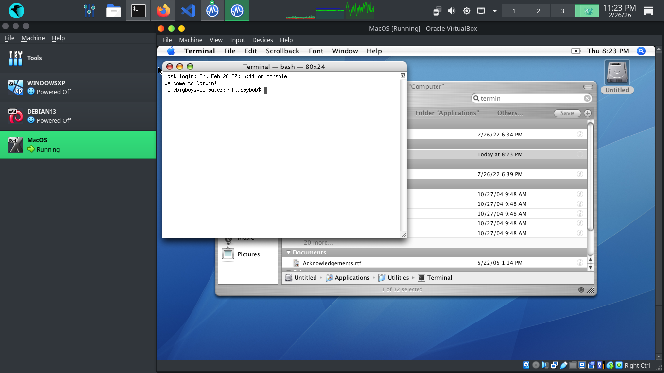 Double click the untitled hard drive and head to Applications, then search for Terminal and open Terminal
