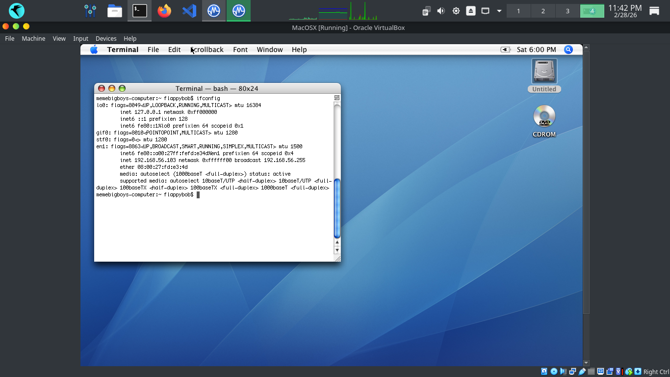 Run the following command from the MacOSX Terminal to test the MacOS virtual machines network connectivity