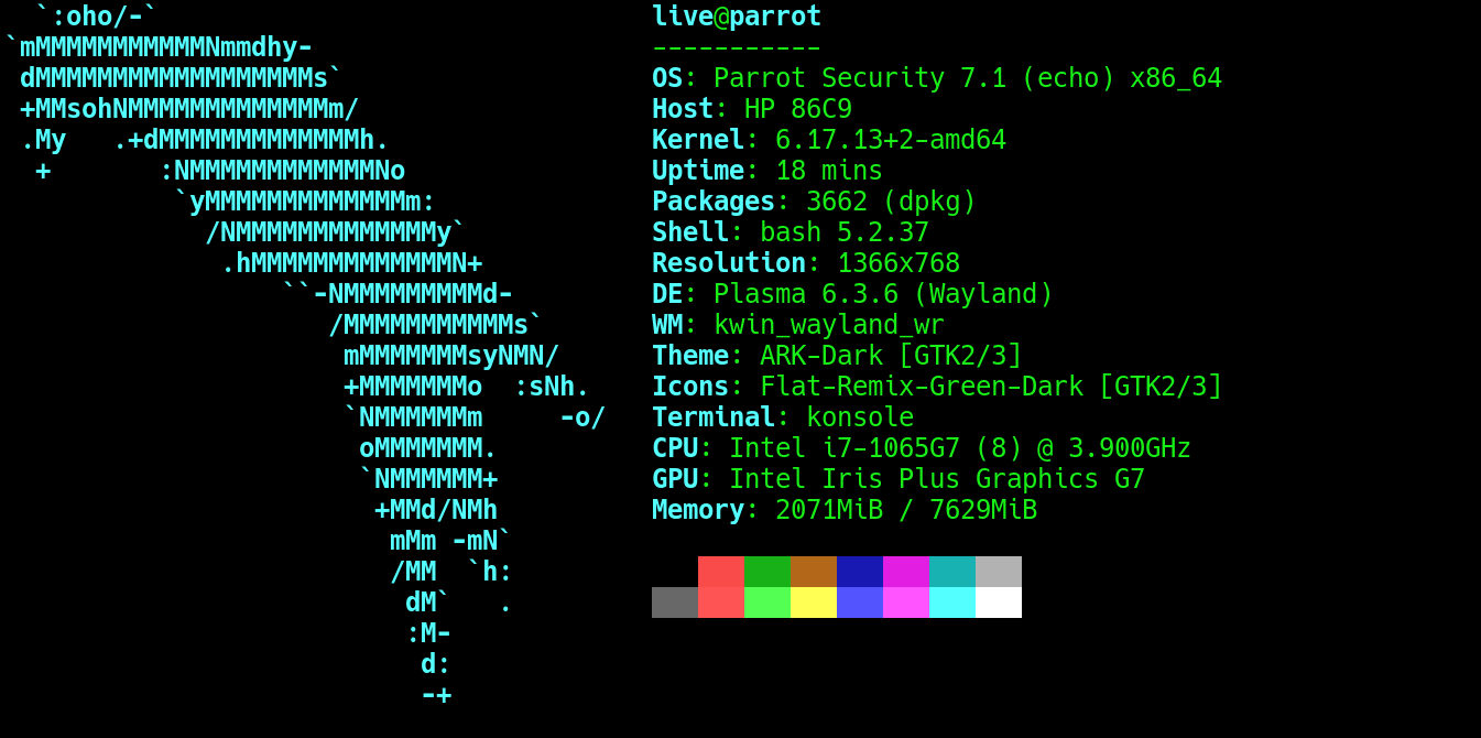 Run the following commands from the Parrot Security Terminal to update and upgrade the base system packages
