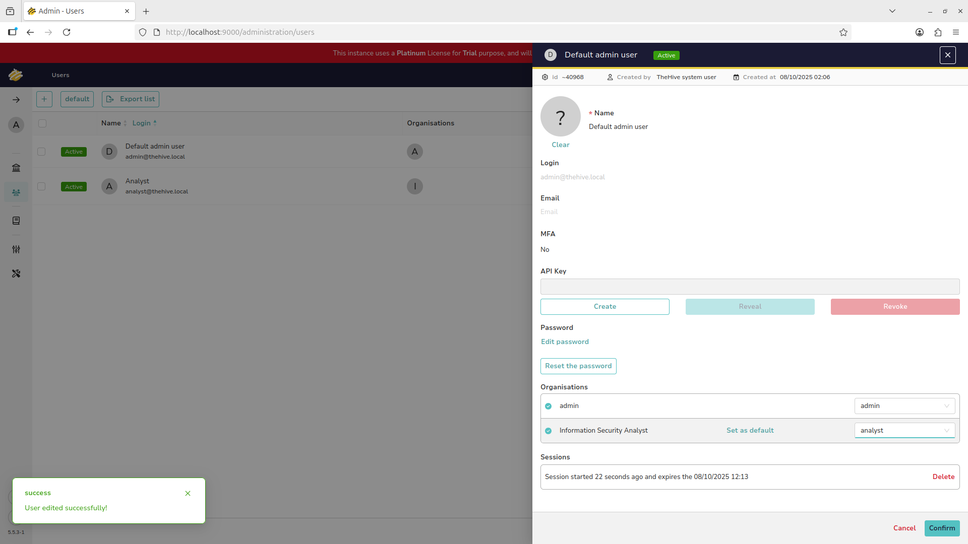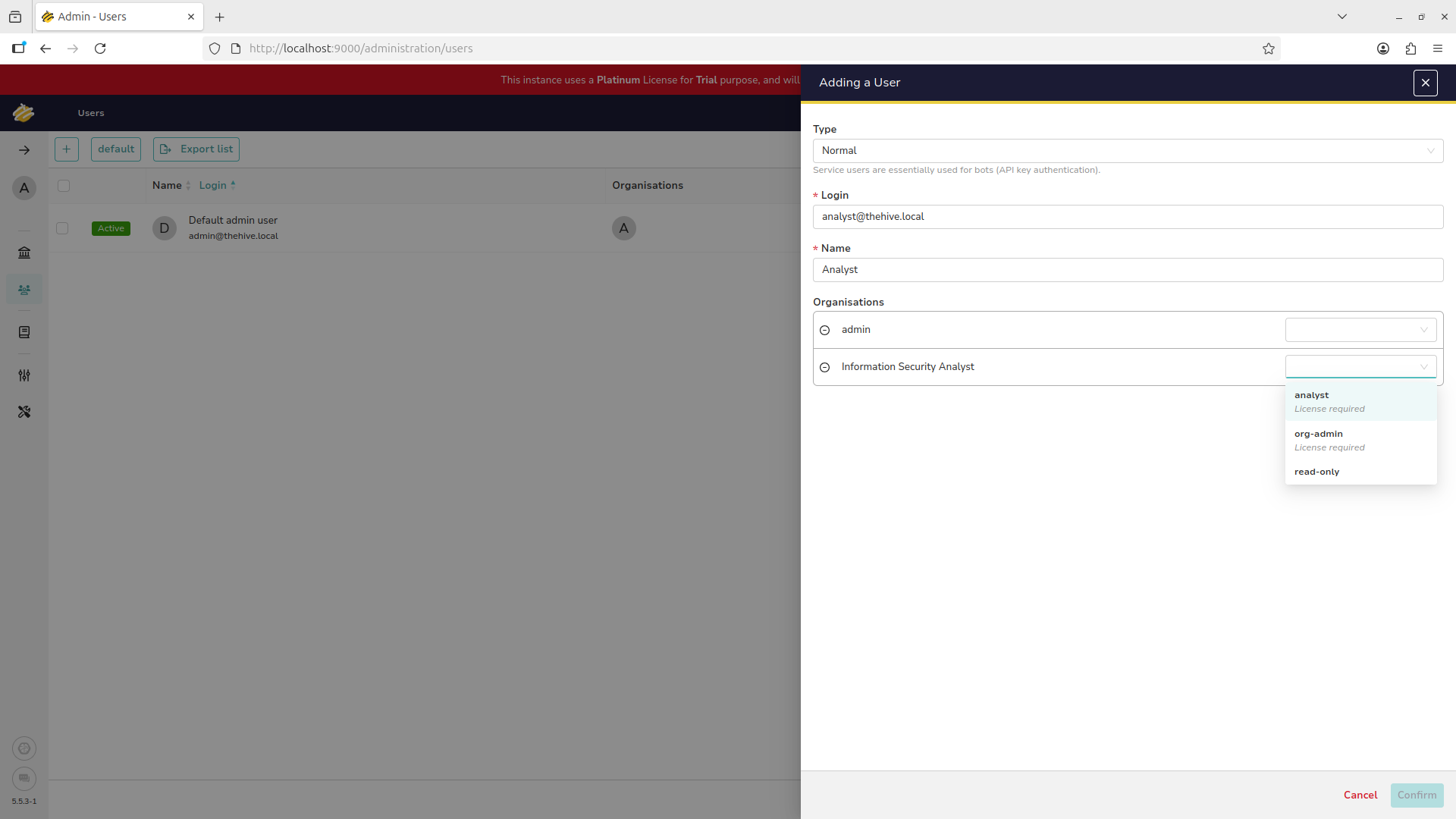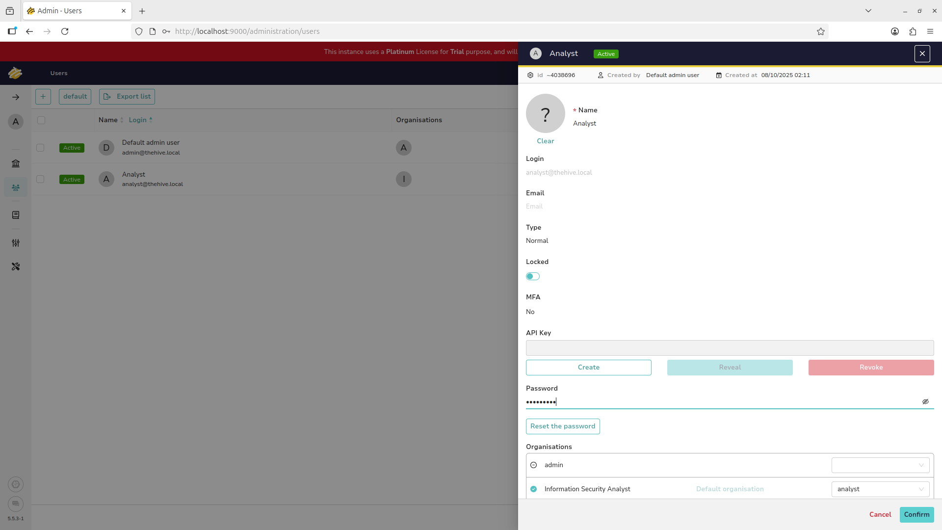 Hit confirm and your new user should be displayed. Hover over the Analyst line and hit the eyeball icon: