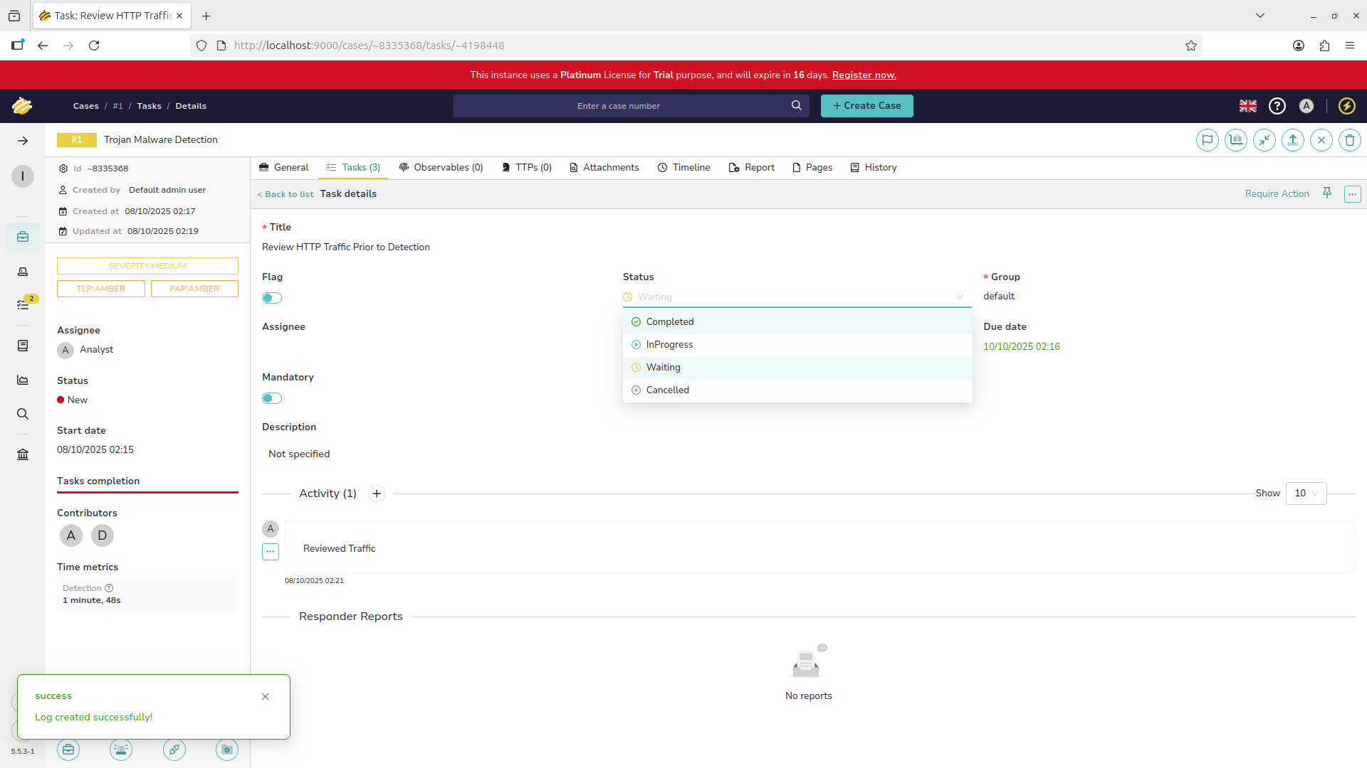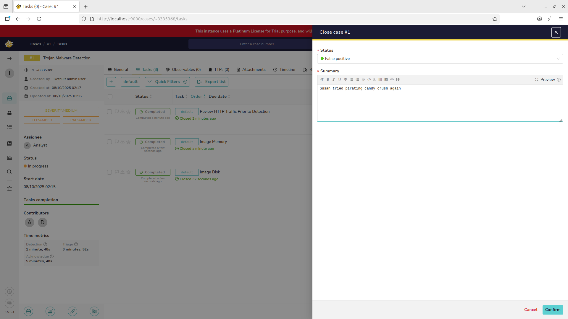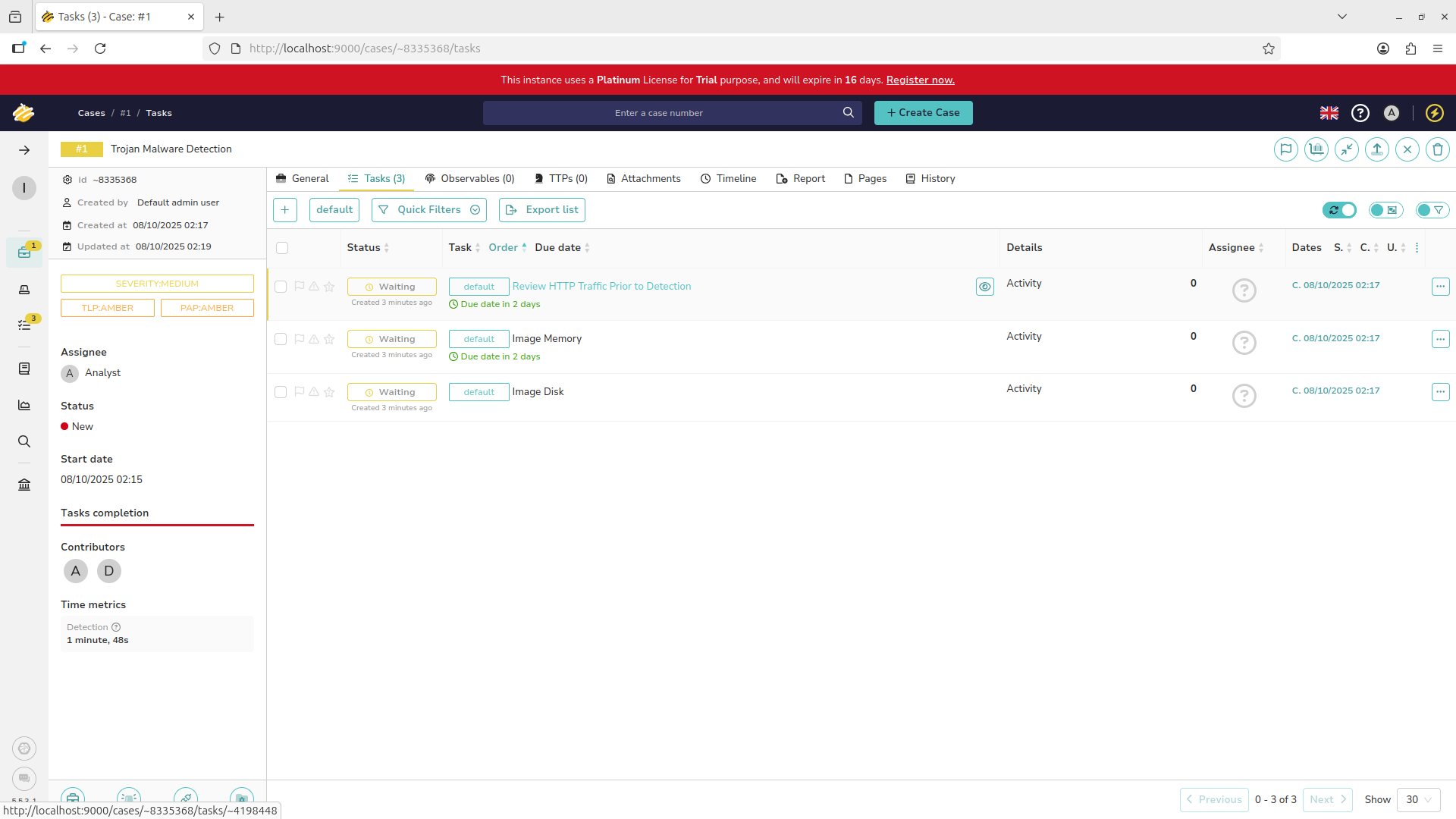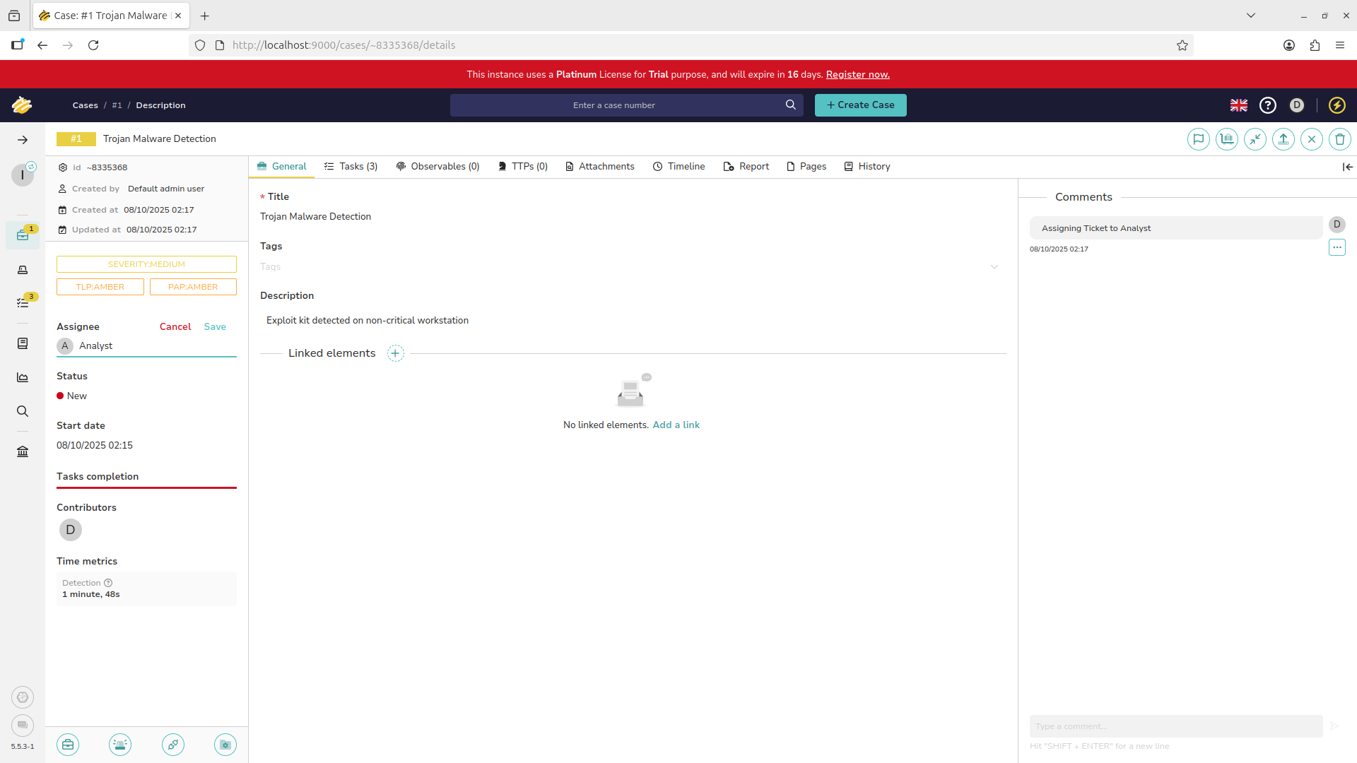This lab demonstrated core incident response workflows using theHive, an open-source security operations platform