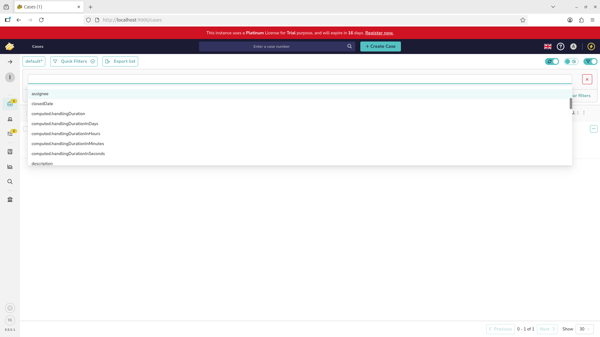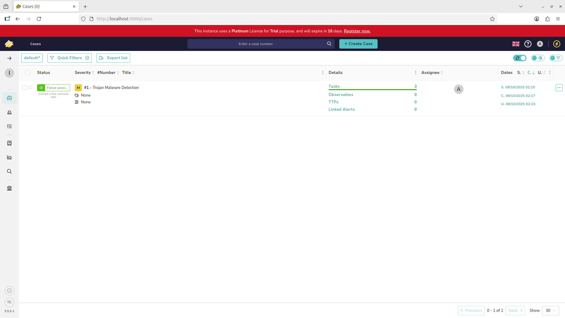 Return to the cases view with the leftmost panel. We can now see that the case has been marked as closed: