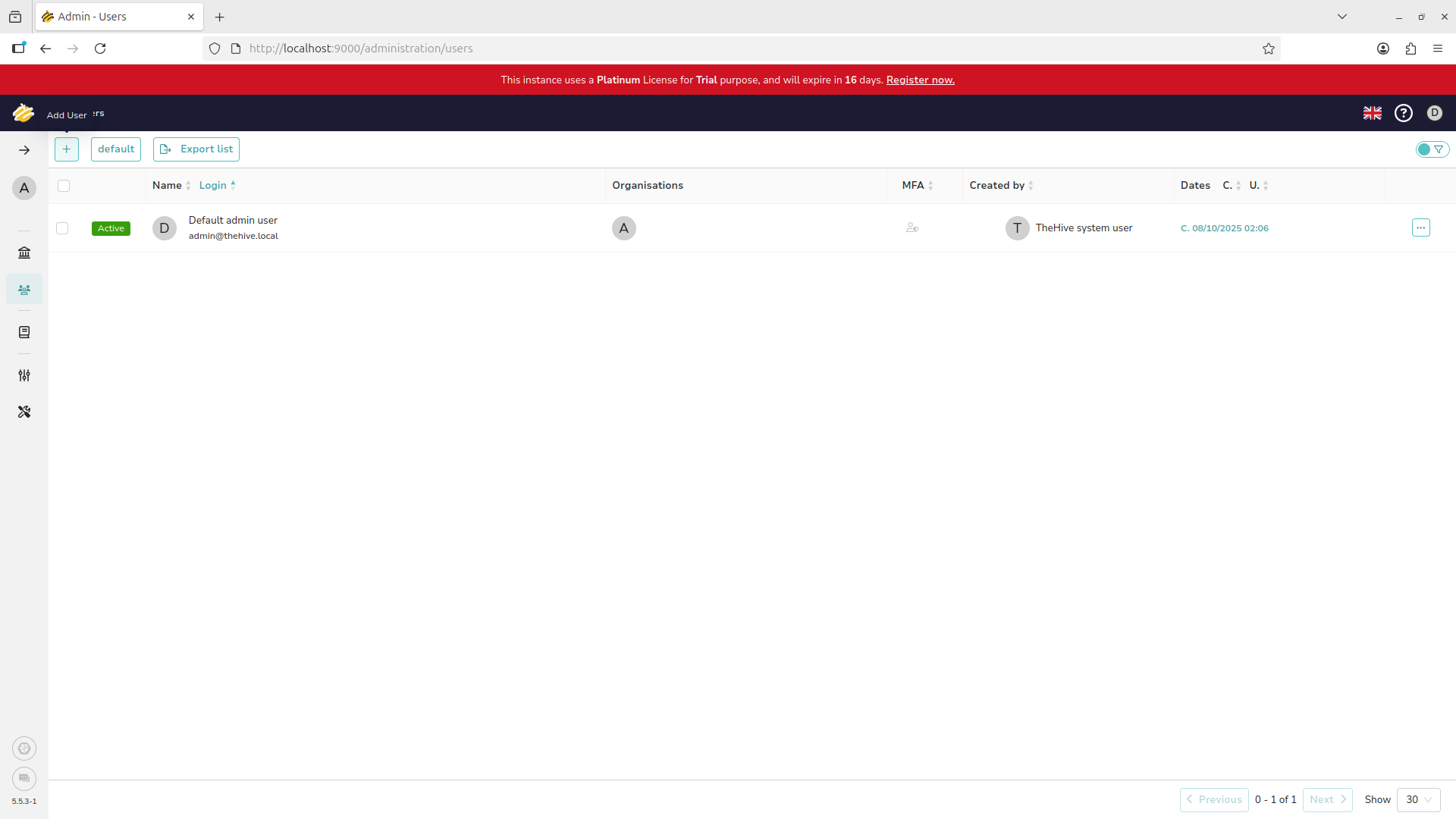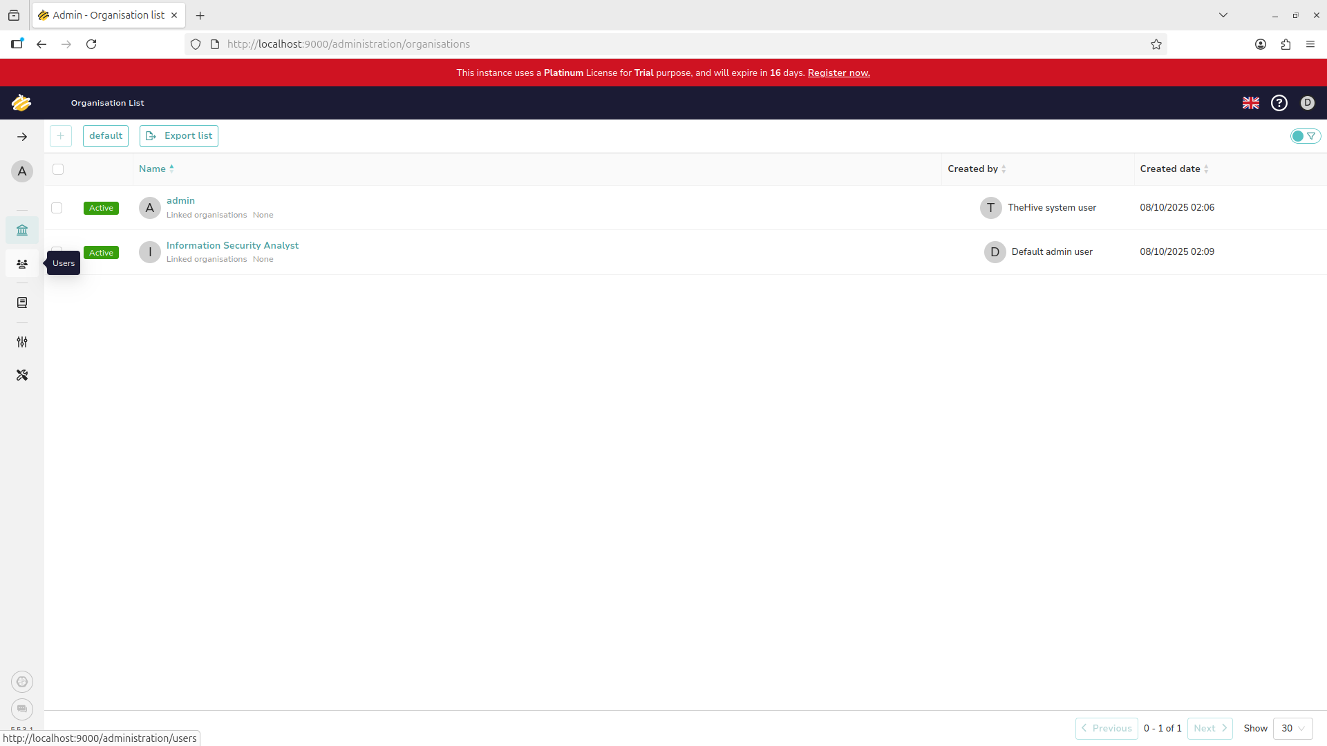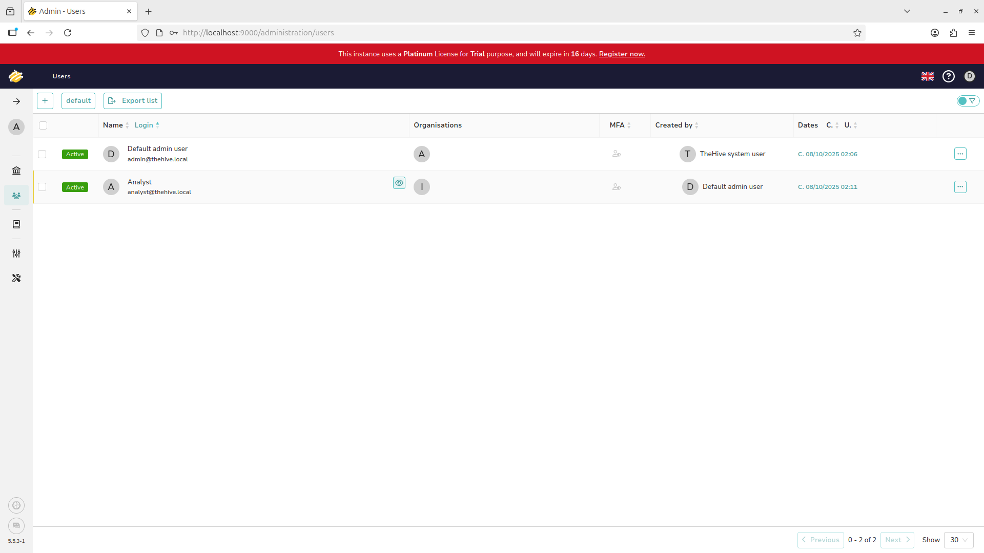 A dropdown menu will appear. Proceed to log out of the admin account and login with analyst@thehive.local: